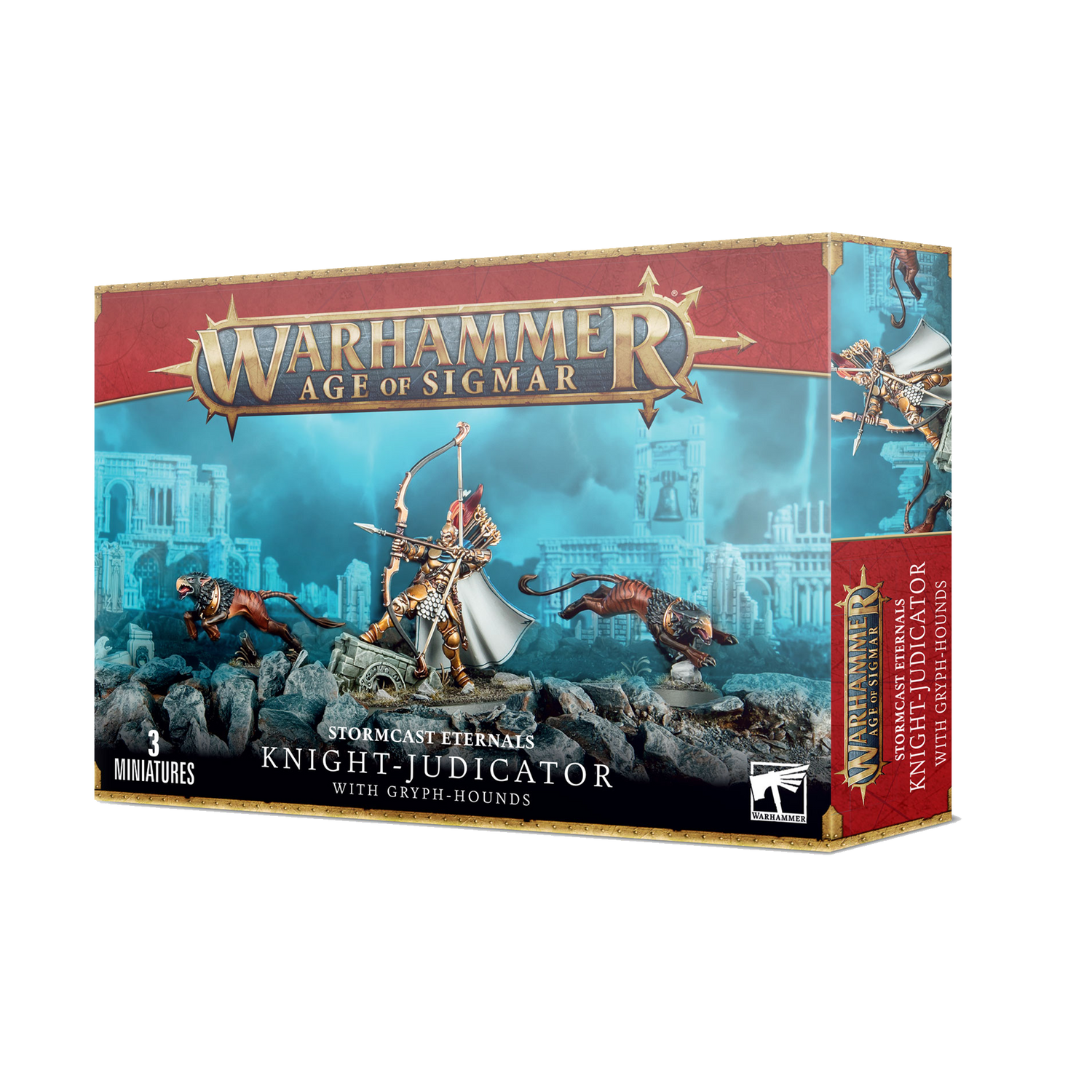 This 17-piece multi-part push-fit kit builds one Knight-Judicator with two head options. The kit also builds 2x Gryph-hounds, and is supplied with 1x 90mm Oval Base, and 2x 40mm Round Bases. These miniatures are supplied unpainted and require assembly