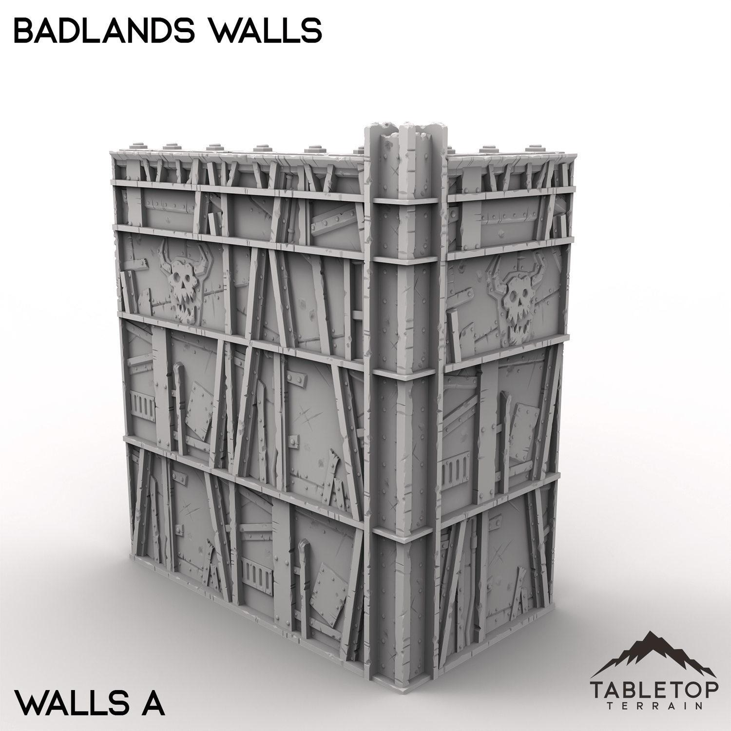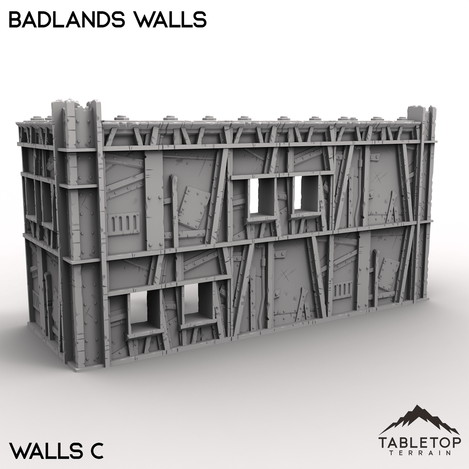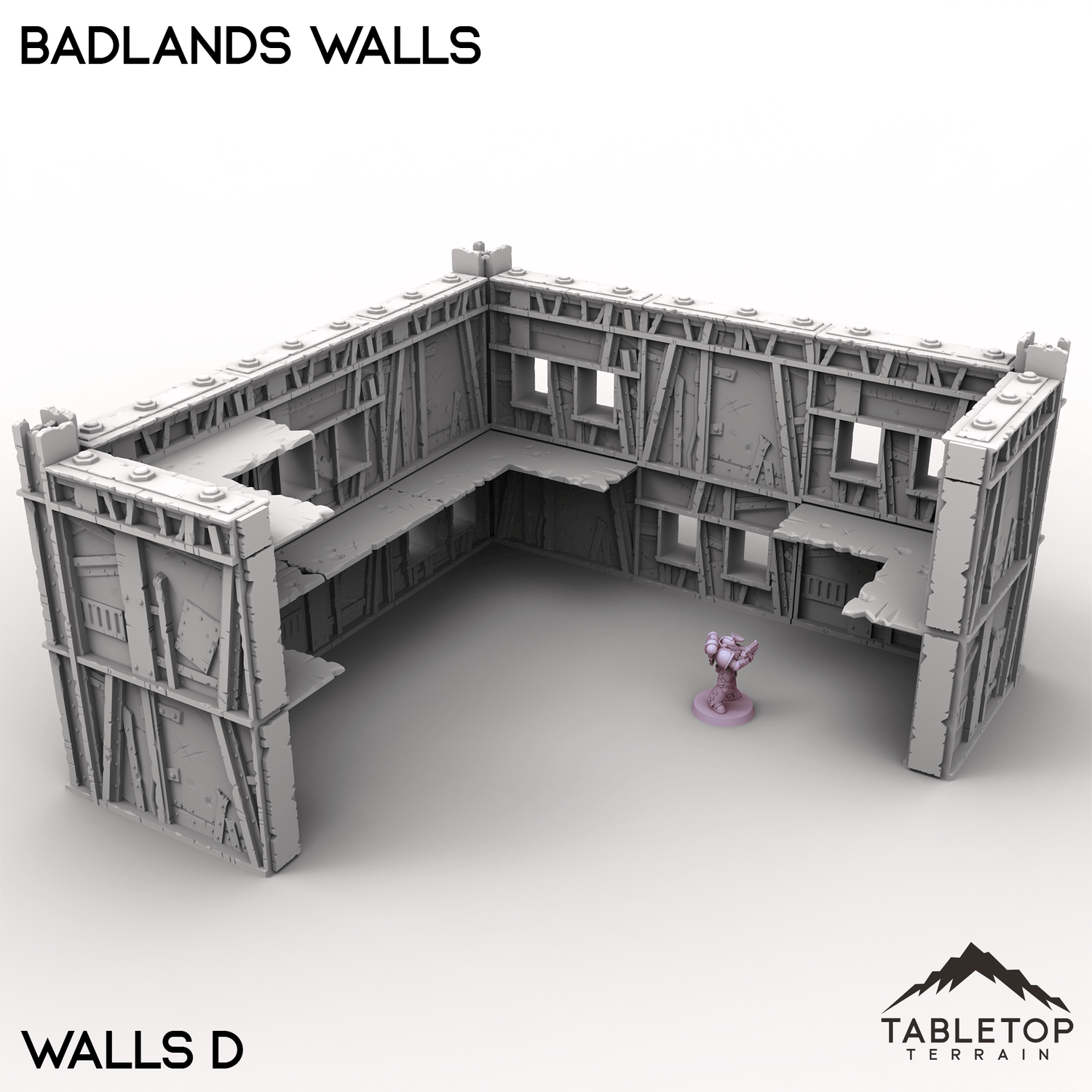 The Badlands Walls set brings rugged, weather-beaten defenses to the edge of civilization. Built from a mix of scrap, and reinforced sections, these modular walls are ideal for protecting frontier outposts, desert settlements, or war-torn strongholds.