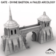The Gate, part of the Divine Bastion, a Failed Arcology set is all that remains of the once proud city gates. This set brings to life the haunting remnants of a once-thriving utopia, now reduced to crumbled stone and shattered arches. With its intricate details and weathered textures, this modular terrain is perfect for wargames, tabletop RPGs, or dioramas needing an evocative, post-apocalyptic setting. Build sprawling ruins or isolated structures to tell the story of this fallen arcology in your games.