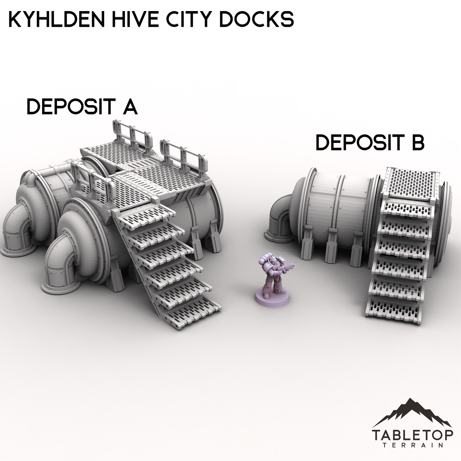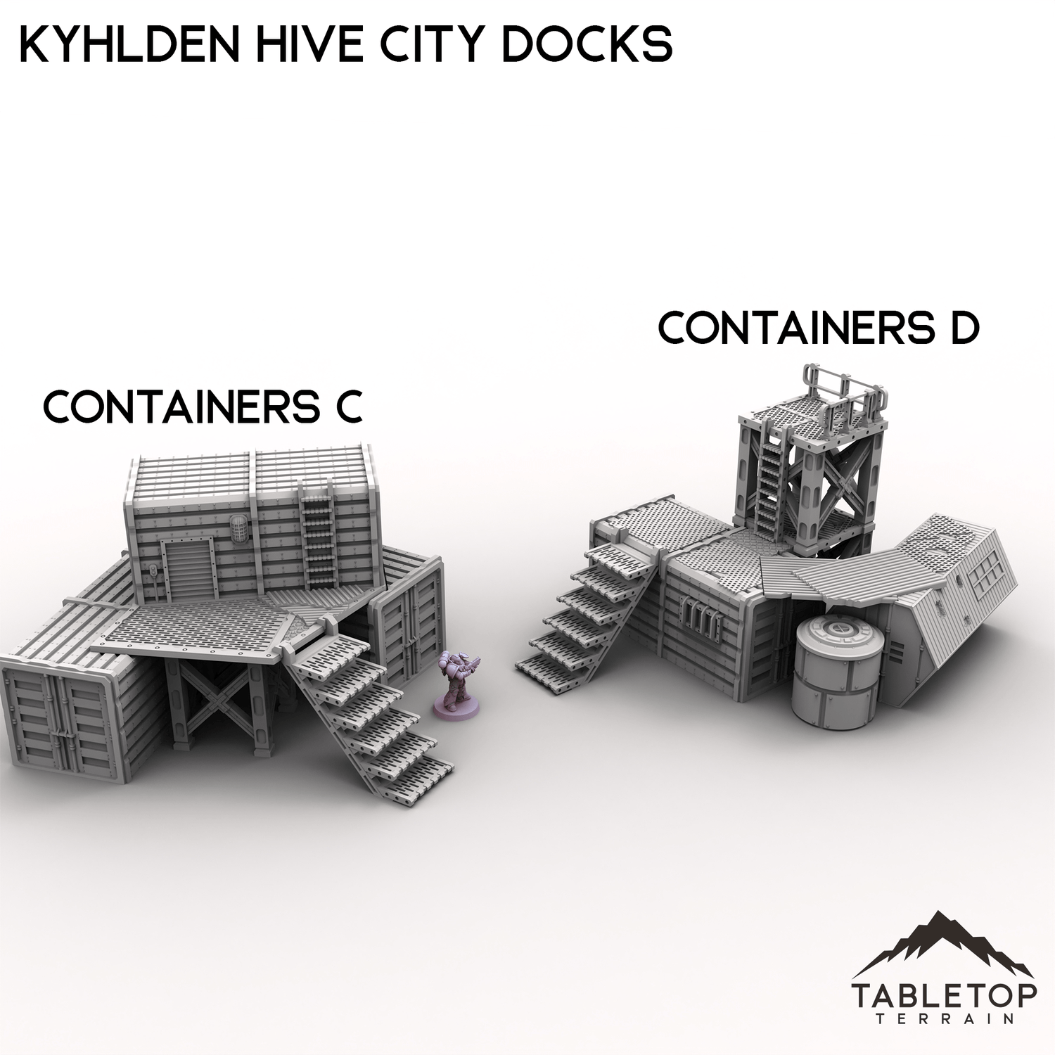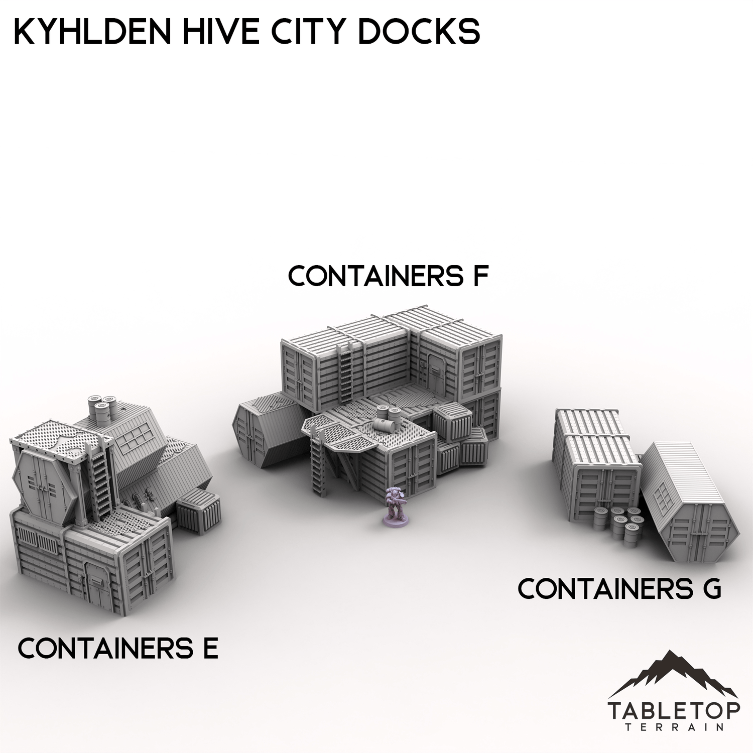 Kylhden Hive City Docks brings the industrial sprawl of a mega-urban trade zone to your tabletop. This set includes modular cargo platforms, an assortment of shipping containers and various resource deposit tanks. Buy each piece individually or the whole set at a discount