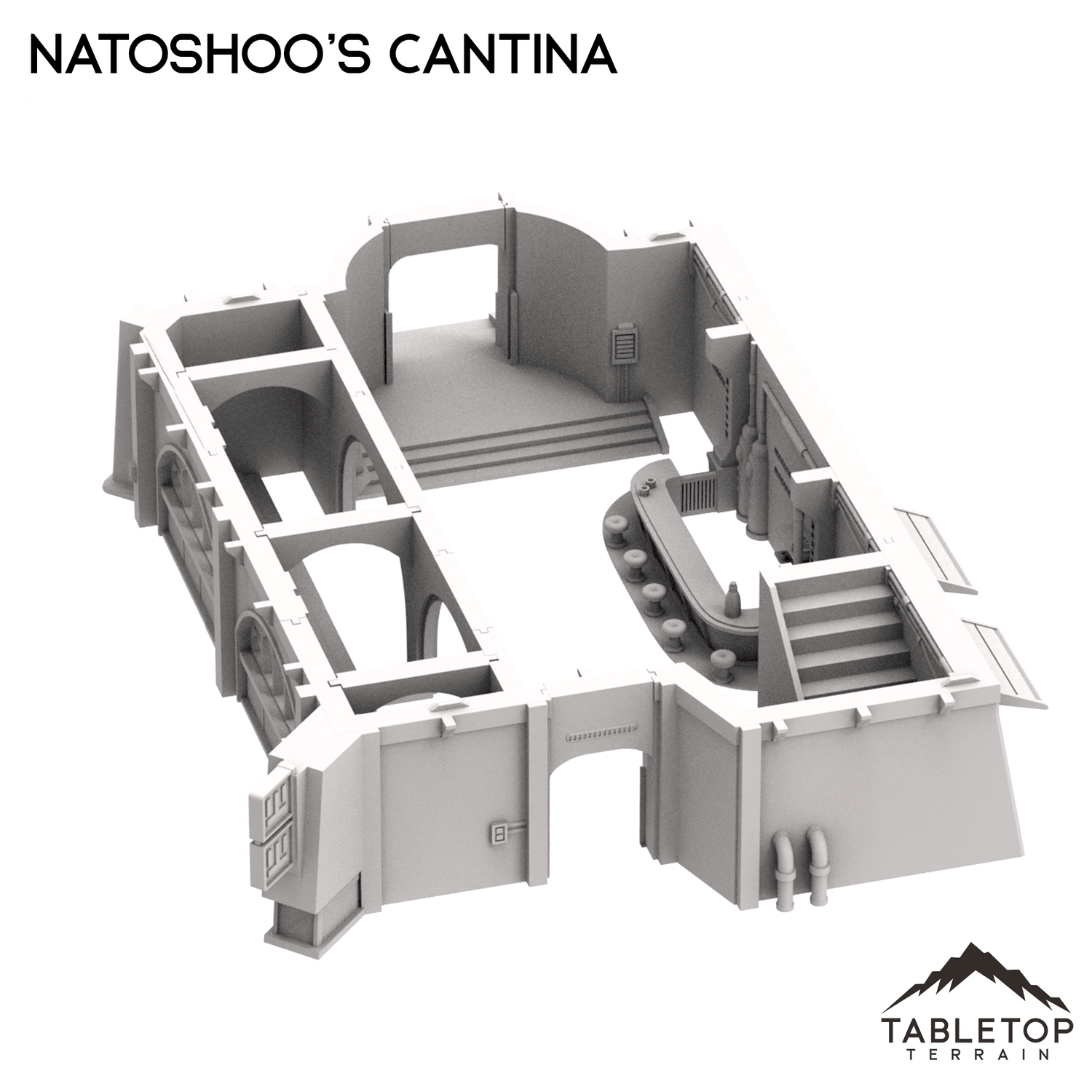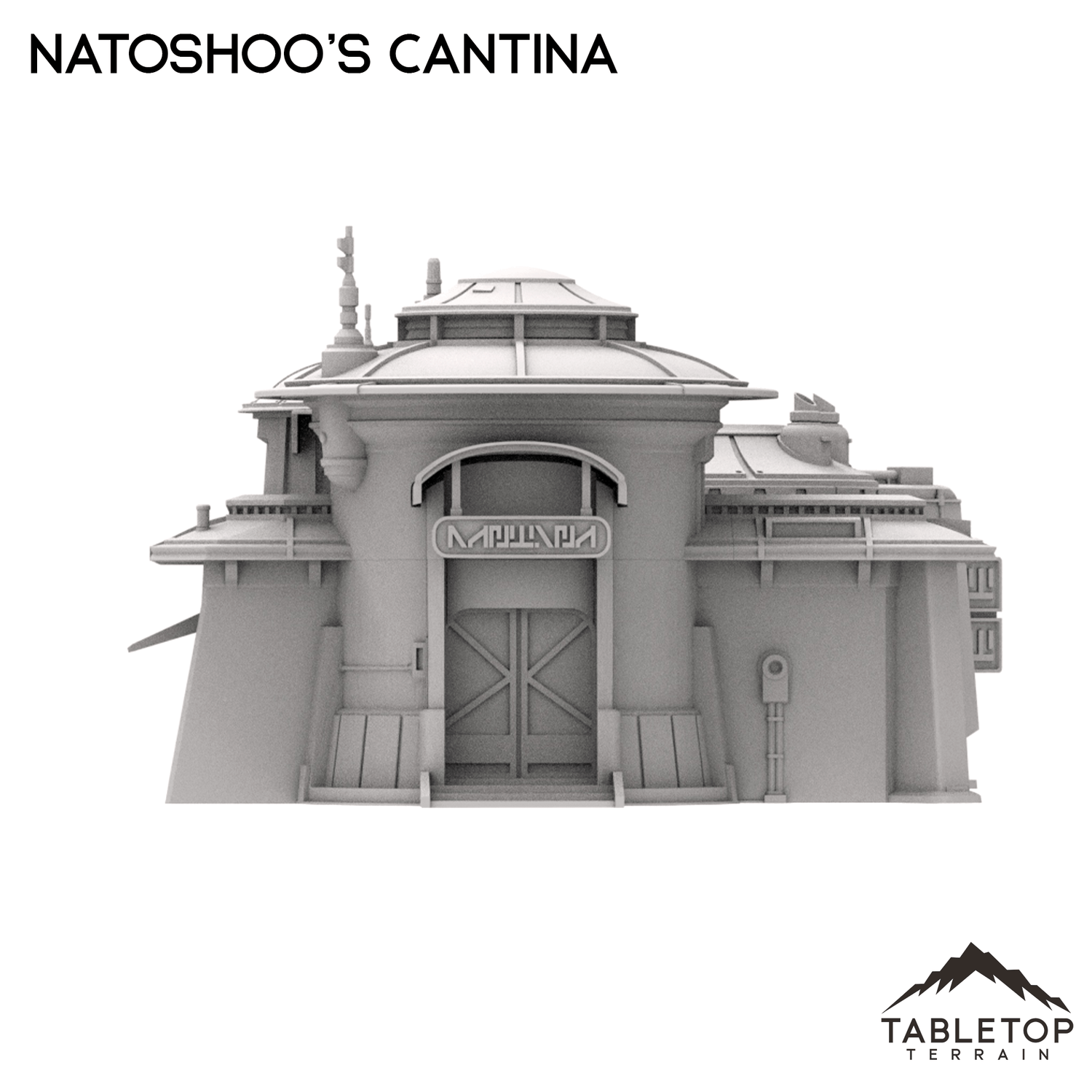 Natoshoo's Cantina is a large, open-interior structure capable of fitting a a variety of minis inside. Measuring over a foot long in 28-35mm scale, this is a perfect set piece for any Outer Rim tabletop. This is a great location for interaction with the members of the town, or perhaps as lone building sitting between towns on a long trip. The Cantina is printed in 40mm, 28-35mm (1:47), 20mm, and 15mm scale. We recommend the 40mm scale for Shatterpoint and the 28-35mm (1:47) scale for Legion.