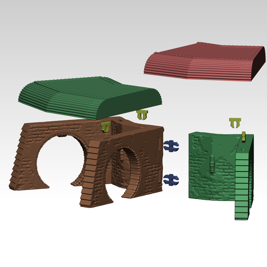 See the photos for full details on the model. Some buildings in Ord Ferrum have removable roofs but there are no articulating doors nor sculpted interiors.