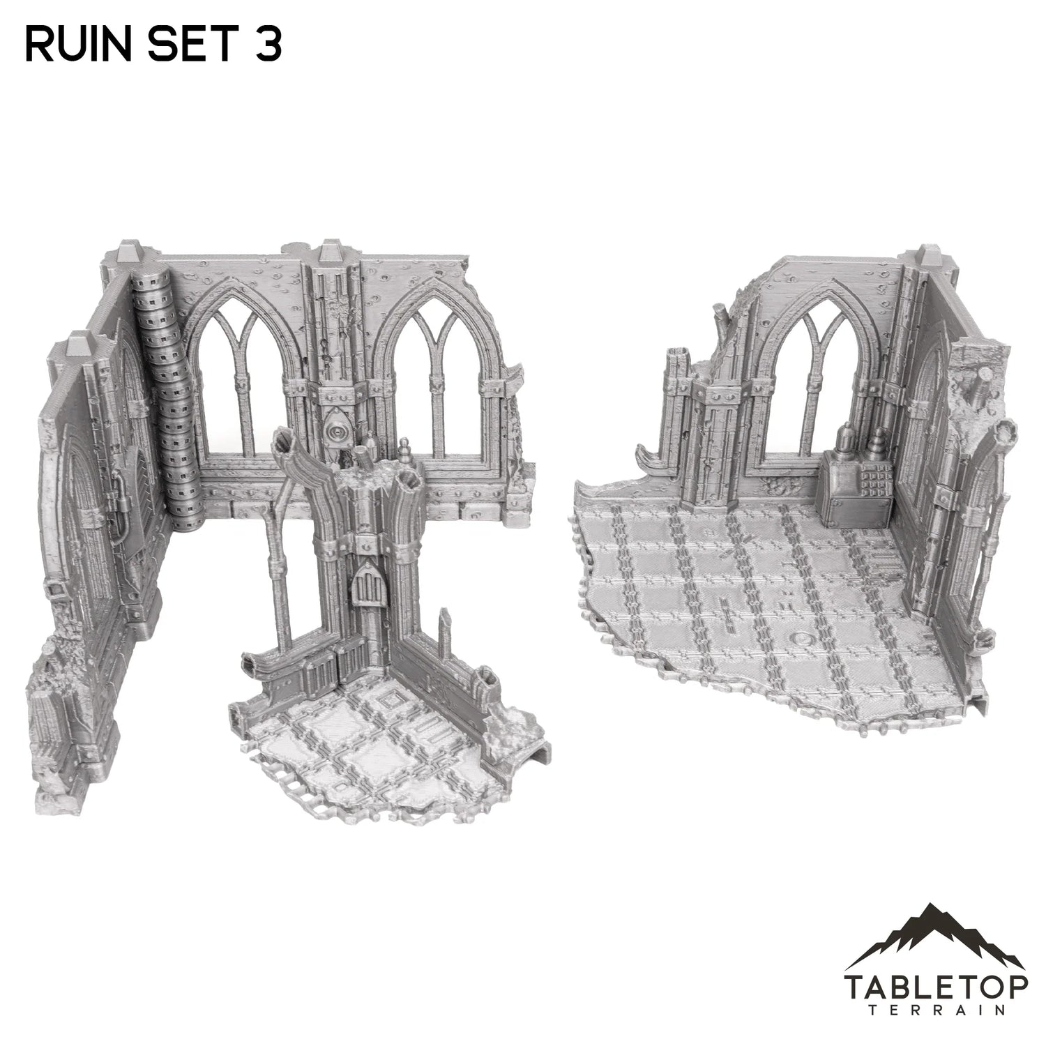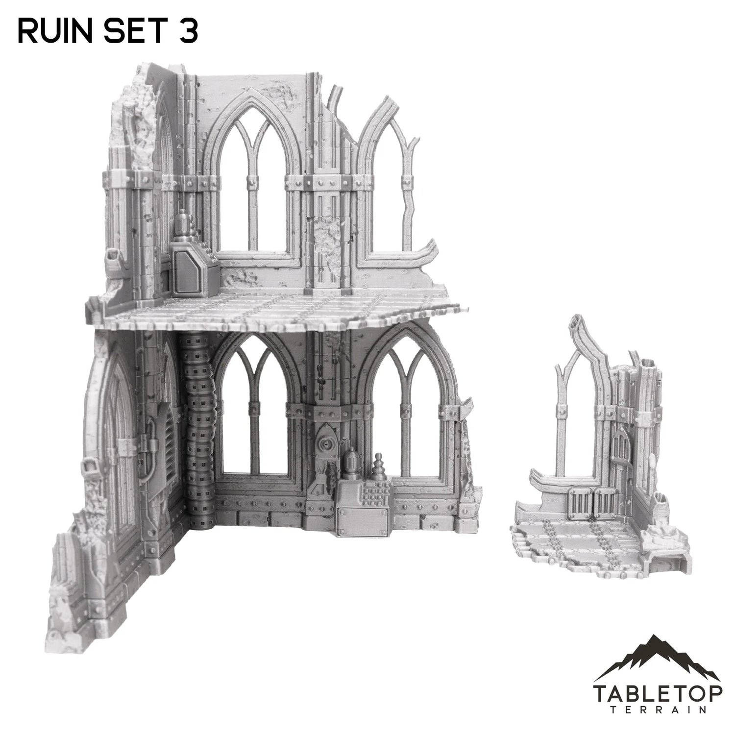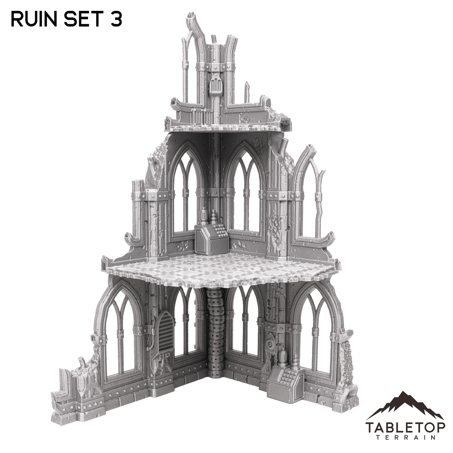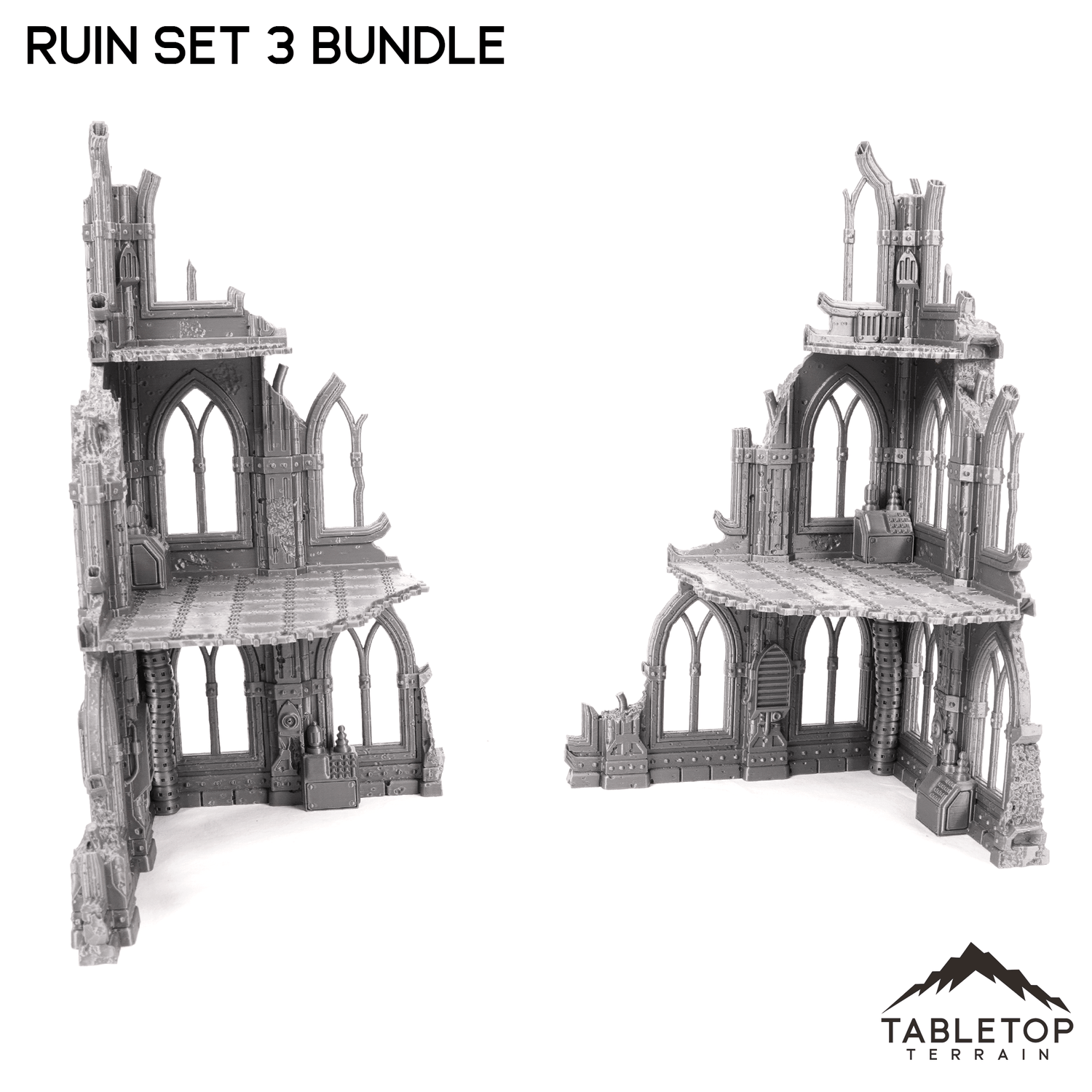 The Ruin Set 3 is an essential piece to a Sci-Fi terrain set. It has gothic detailing with some sci-fi flair such as terminals and vents, although it could potentially double as a high-tech fantasy ruin. The base set comes with one three-story stackable ruin. The bundle comes with two three-story stackable ruins.