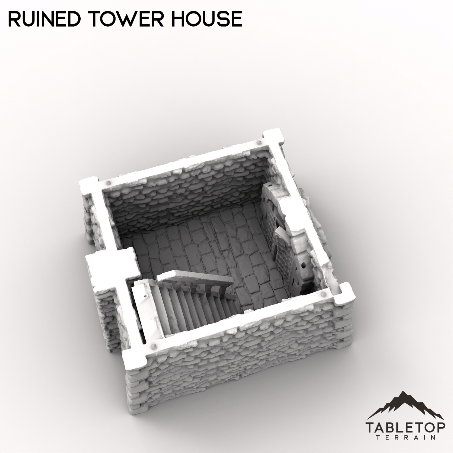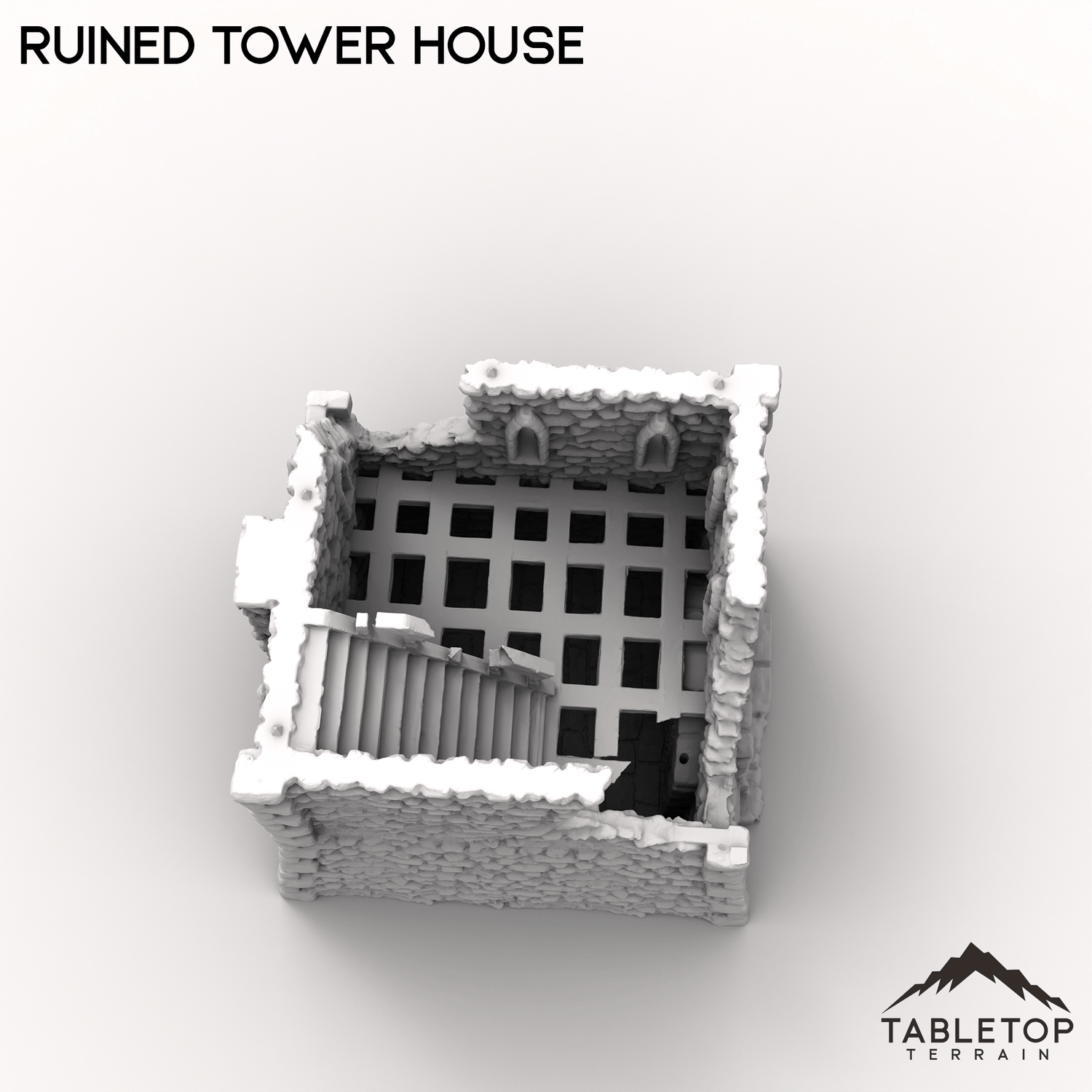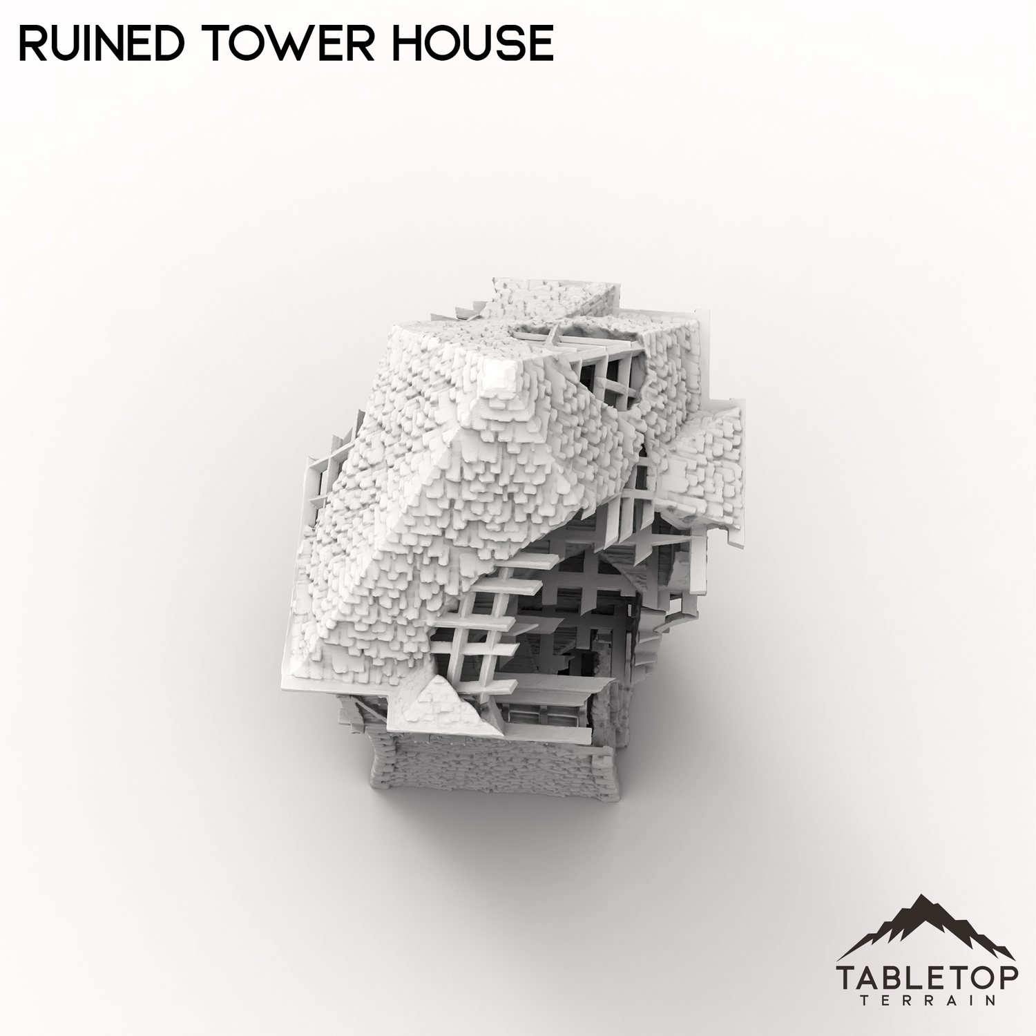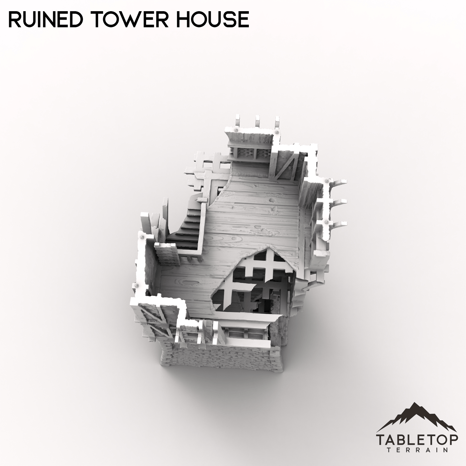 This Ruined Tower House is a 4-story tower, swaying dangerously under its slowly failing supports. The walls have fallen away, exposing the crumbling interior to the elements and outside threats. What secrets did this tower once hold?
