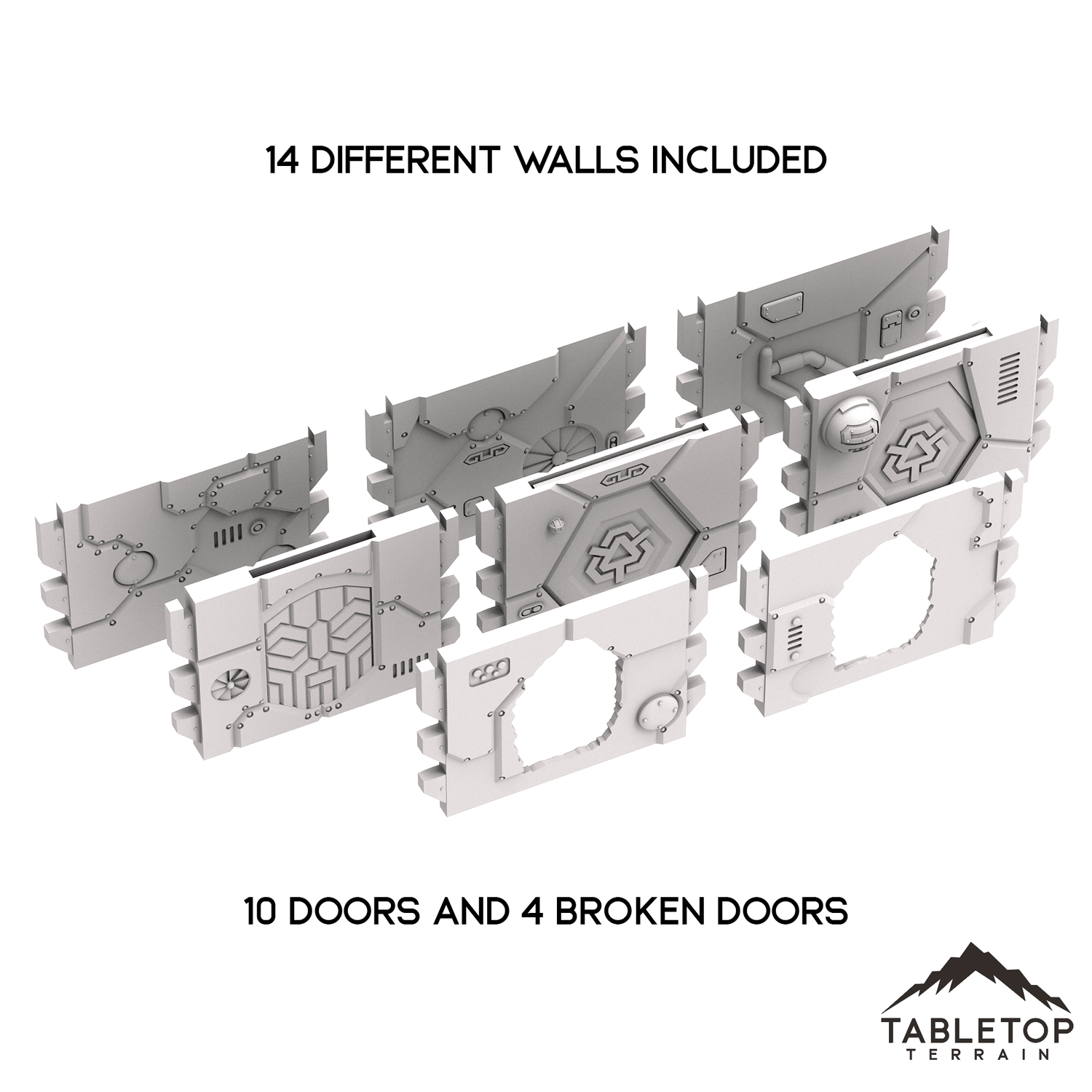 KT Set- 27 Pillars, 27 Pillar Caps, 14 Walls, 10 Doors, 4 Broken Walls, 2 Broken Beams, 2 Beams, 2 Dynamo, 2 Tanks, 2 Power Panels, 2 Pipes, 2 Control Panels.