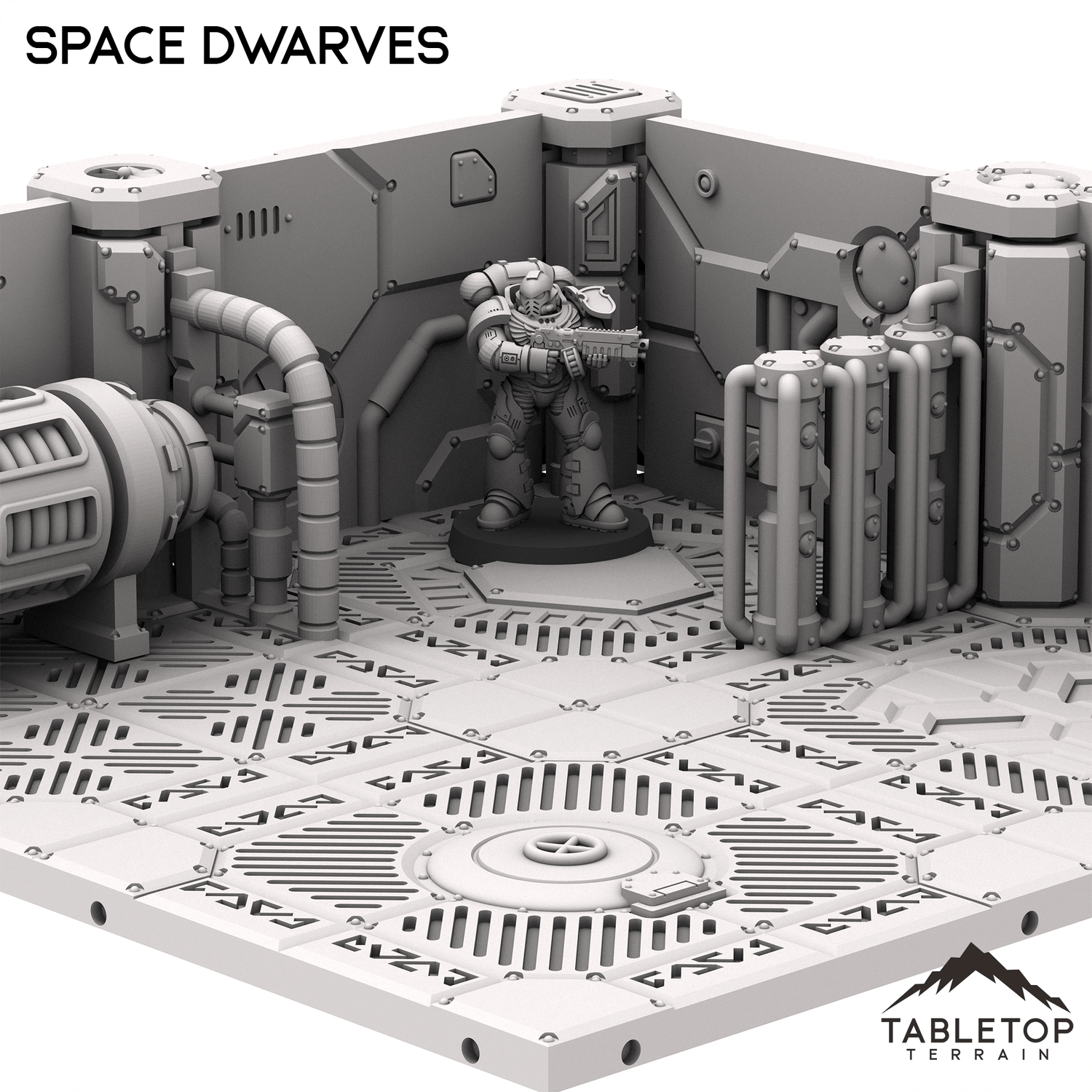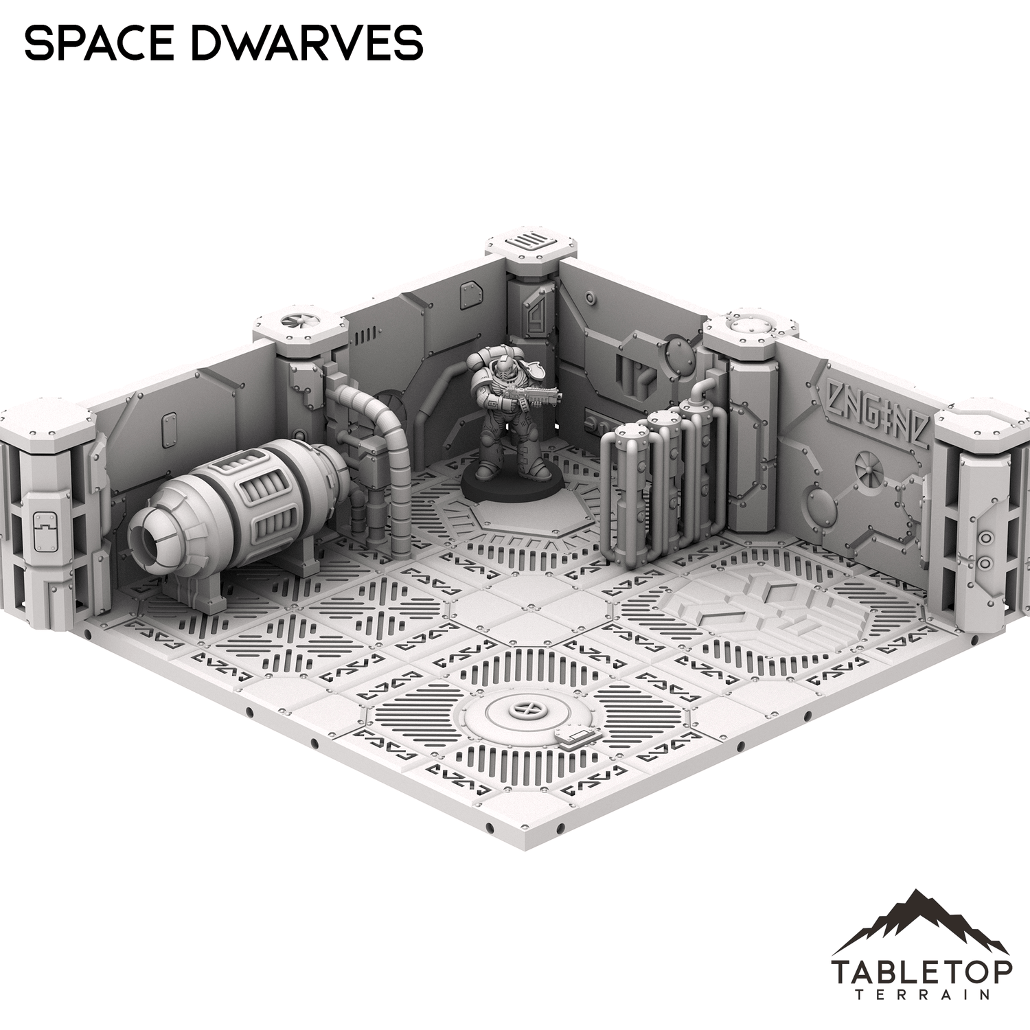 The Space Dwarves Mining Ship Terrain set is a combination of walls and scatter accessories, forming the interior of an dwarven-style battleship. The terrain is fully modular for arranging into whatever order you'd like, and is 100% compatible with the official GW terrain. These pieces slot in with the official ones, allowing you to mix and match to create a larger battlefield. We also sell styles of ship terrain for different factions, such as Gothic Navy or Tombships.