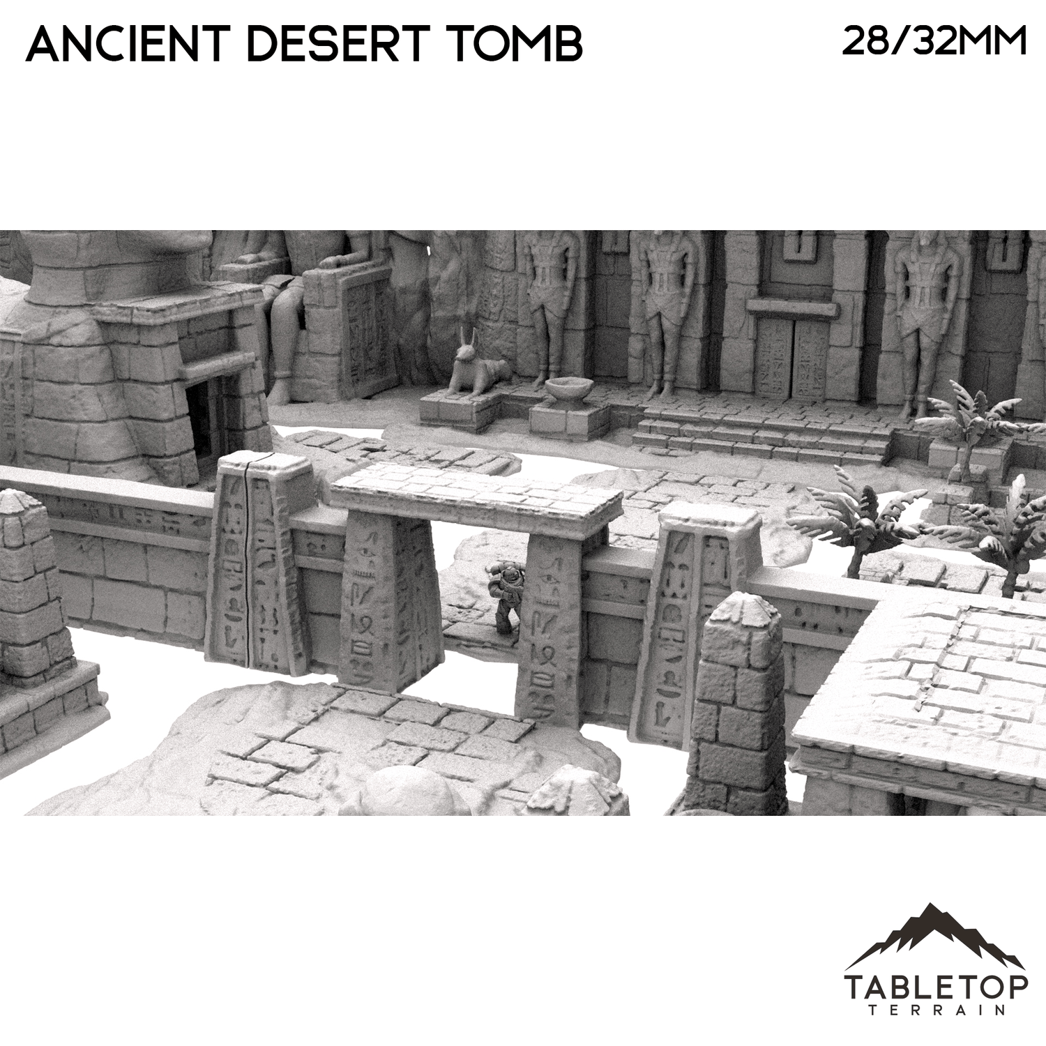 In 28mm scale, the tomb measures 1482x1034x299mm / 58.3x40.7x11.8 inches