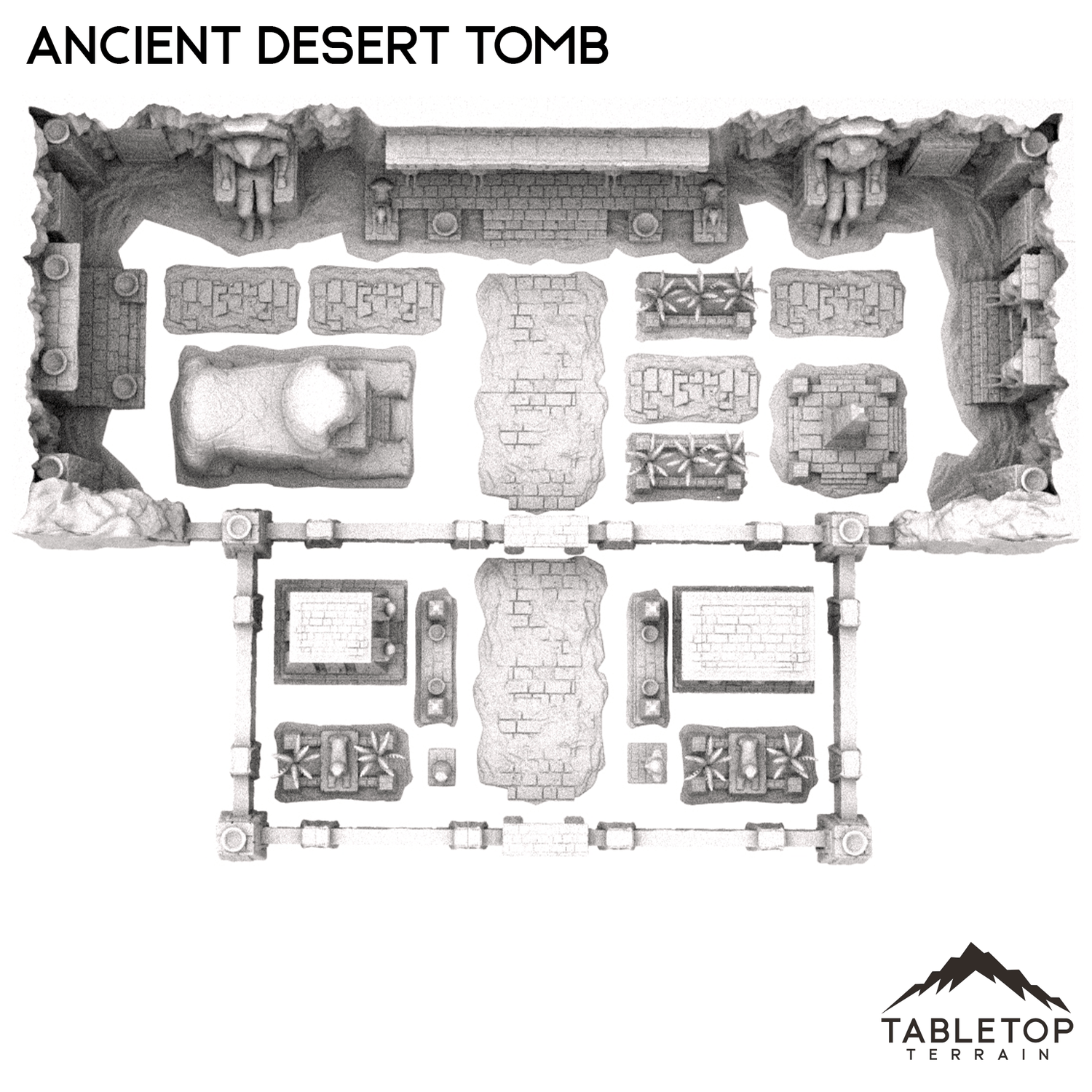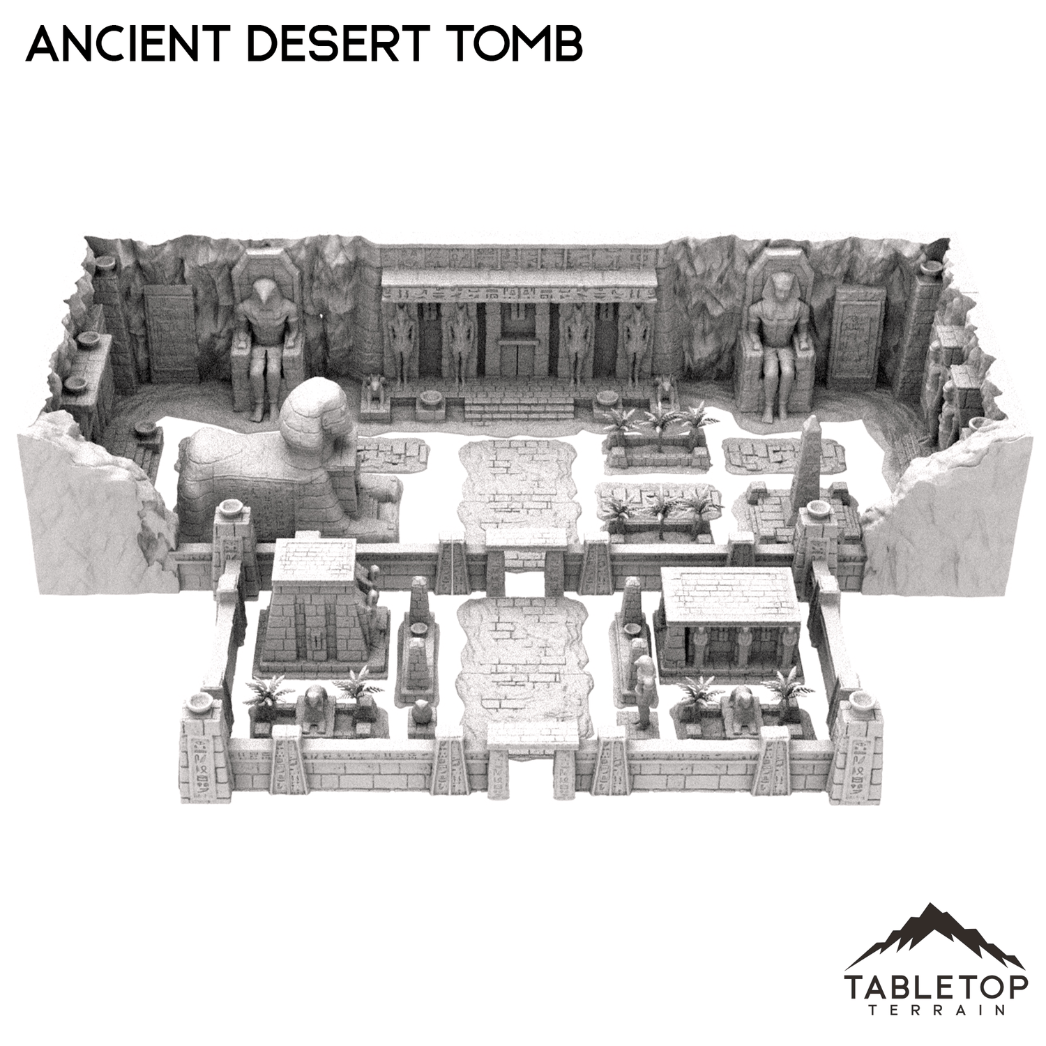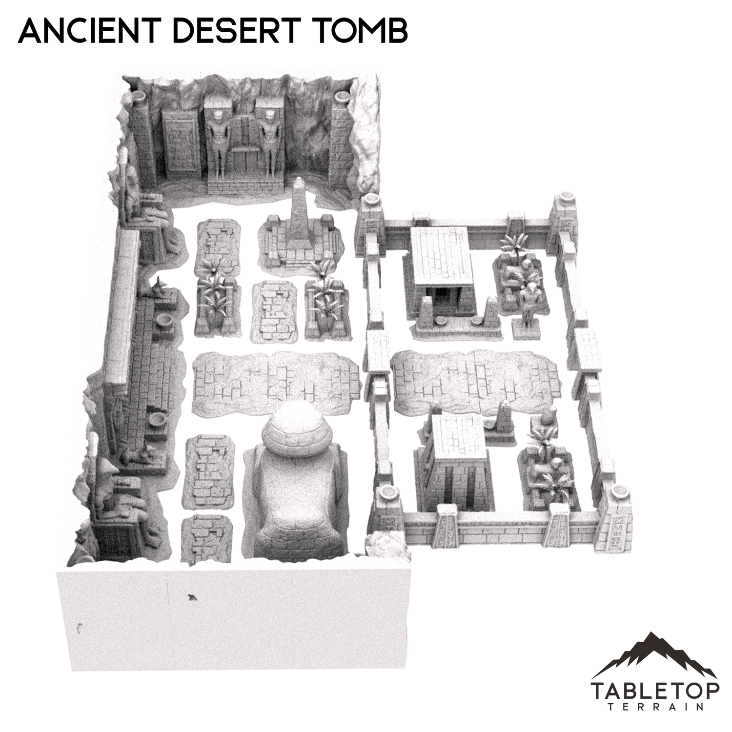 The Ancient Desert Tomb is a massive, sprawling set that contains 3 different smaller tombs with space inside. The 3 slammer tombs include a sphinx, and each tomb can hold minis and treasure. The layout of the Ancient Desert Tomb can be adjusted however you'd like, for whatever your table needs. Reaching almost 5 feet in length and over 3 feet in depth, this set with its many pieces of environment can become the basis for an entire campaign by itself. The Ancient Desert Tomb is available in 28mm, 20mm, and 15mm scales.