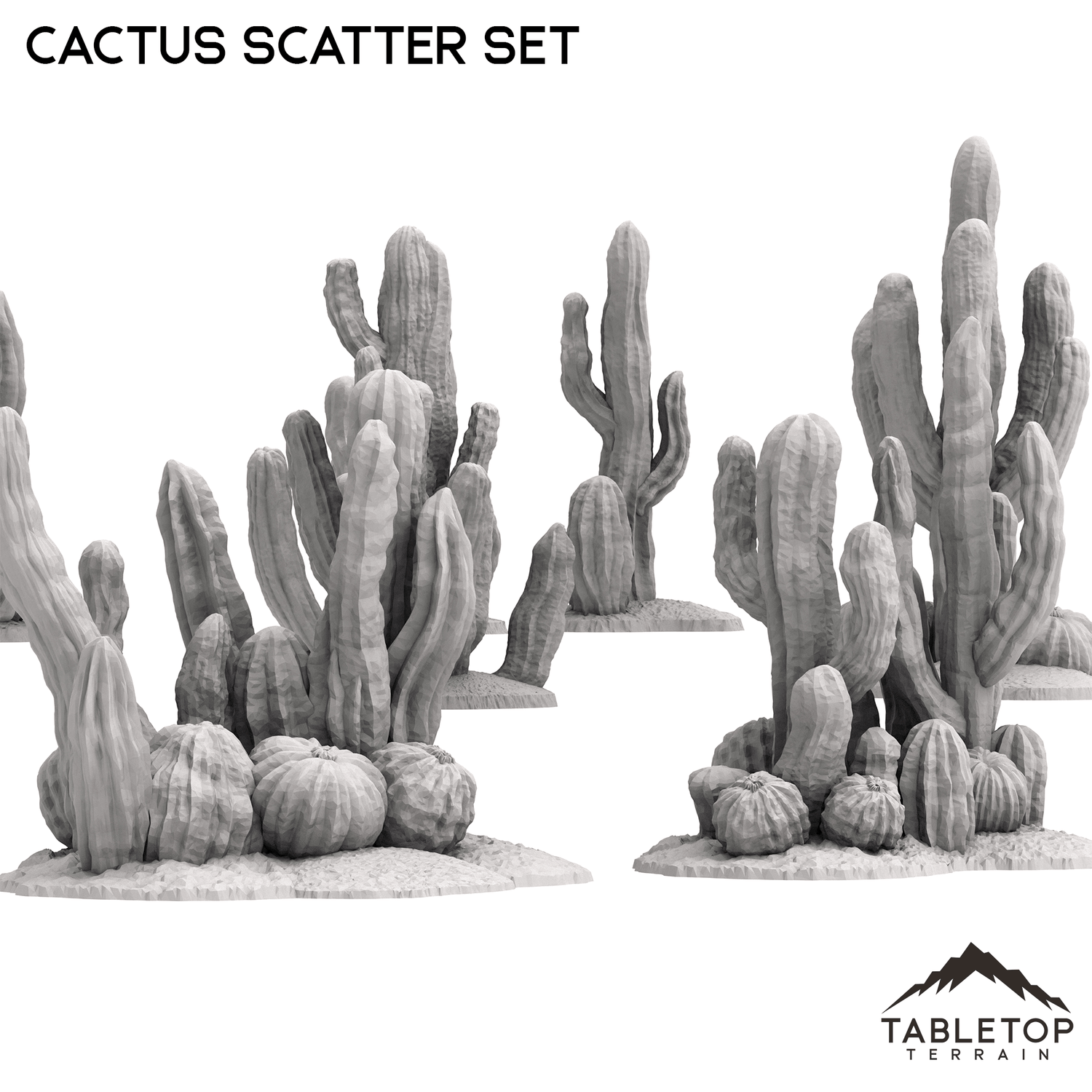 The Cactus Scatter set is a set of 8 cactus mounds with bases. Each mound comes fully assembled and ready to paint or play.