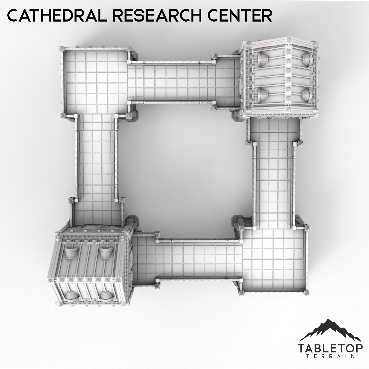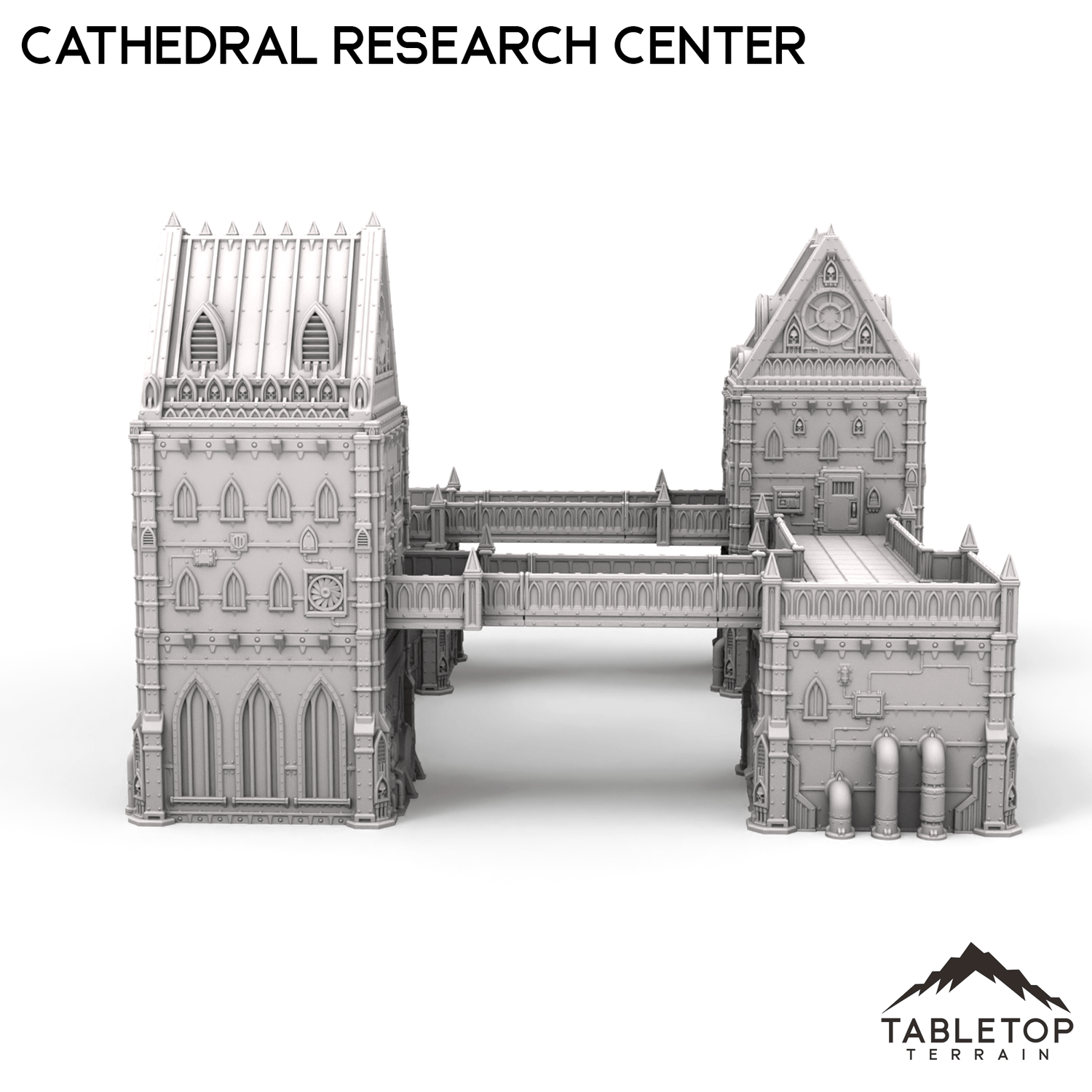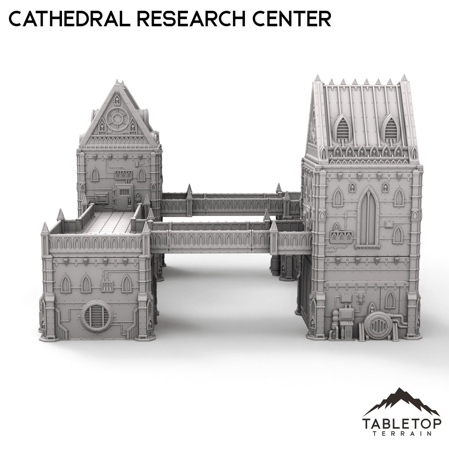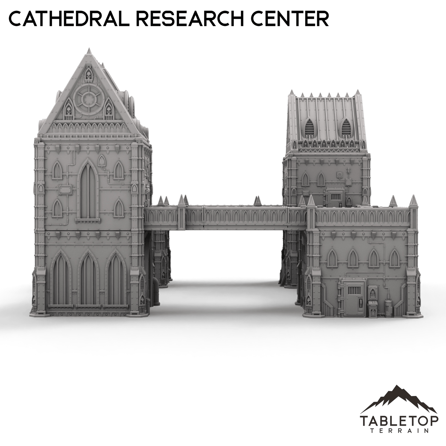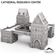 Discover the majestic buildings of "Caelum Turrim," a towering set of intricately detailed gothic towers and buildings. Each structure is adorned with tall towers, ornate windows and decorated walkways, adding a regal touch to your tabletop world. This set, the Cathedral Research Center, features 2 primary buildings with cathedral style rooftops, and 2 smaller buildings connected by right-angle walkways, all with a high level of detail.