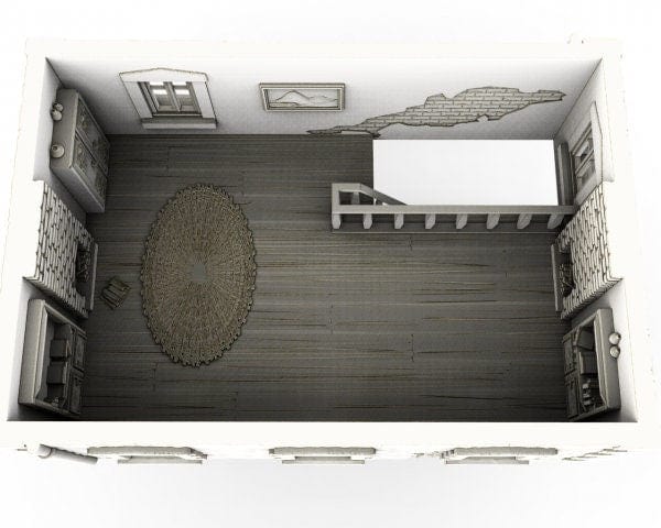 In 28mm scale, the Townhouse measures 156x108x159mm / 6.1x4.2x6.3 inches.