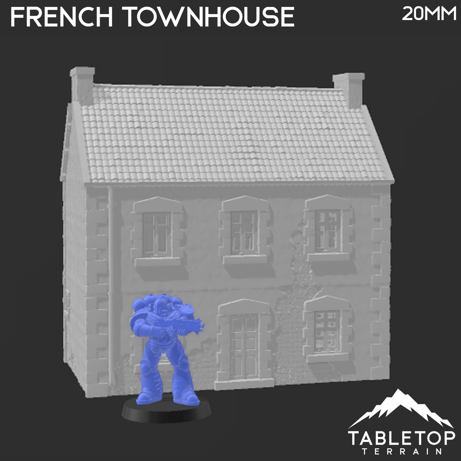 The French Townhouse is a building for tabletop wargames. Perfect for WWII tabletop wargames such as Bolt Action, Flames of War, or Fields of Glory. It is available to be 3d printed in either 15mm, 20mm, 28mm or 32mm scale in .2mm high quality resolution. Tabletop Terrain prints all of Printable Scenery's items with their own recommended quality and resolution items.