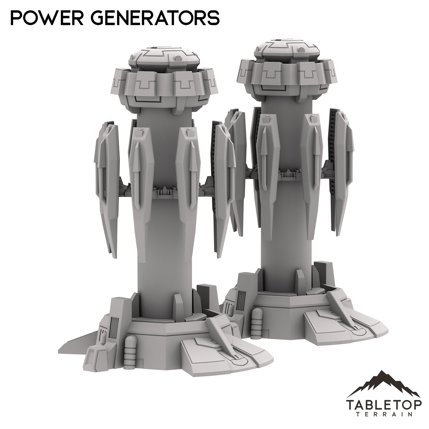 The Power Generator is a self standing power source that powers the rest of the Tau buildings. Two generators are included and require assembly.