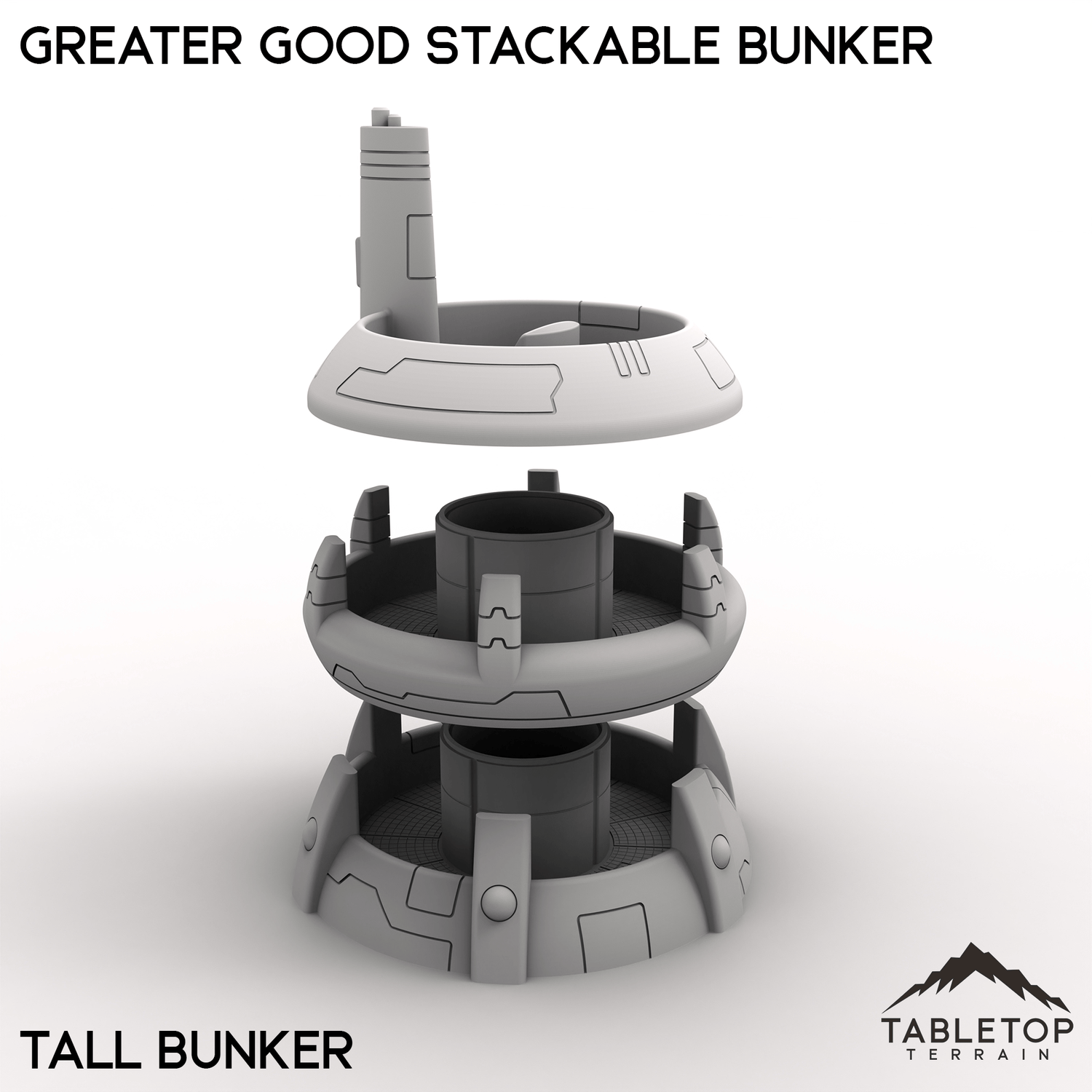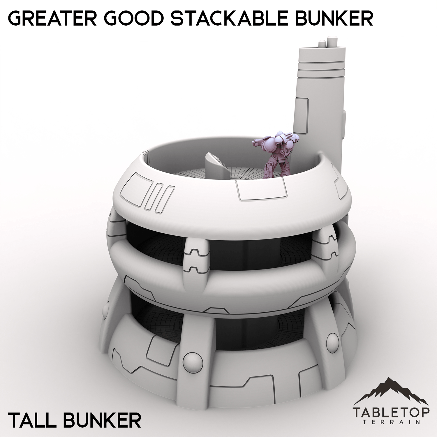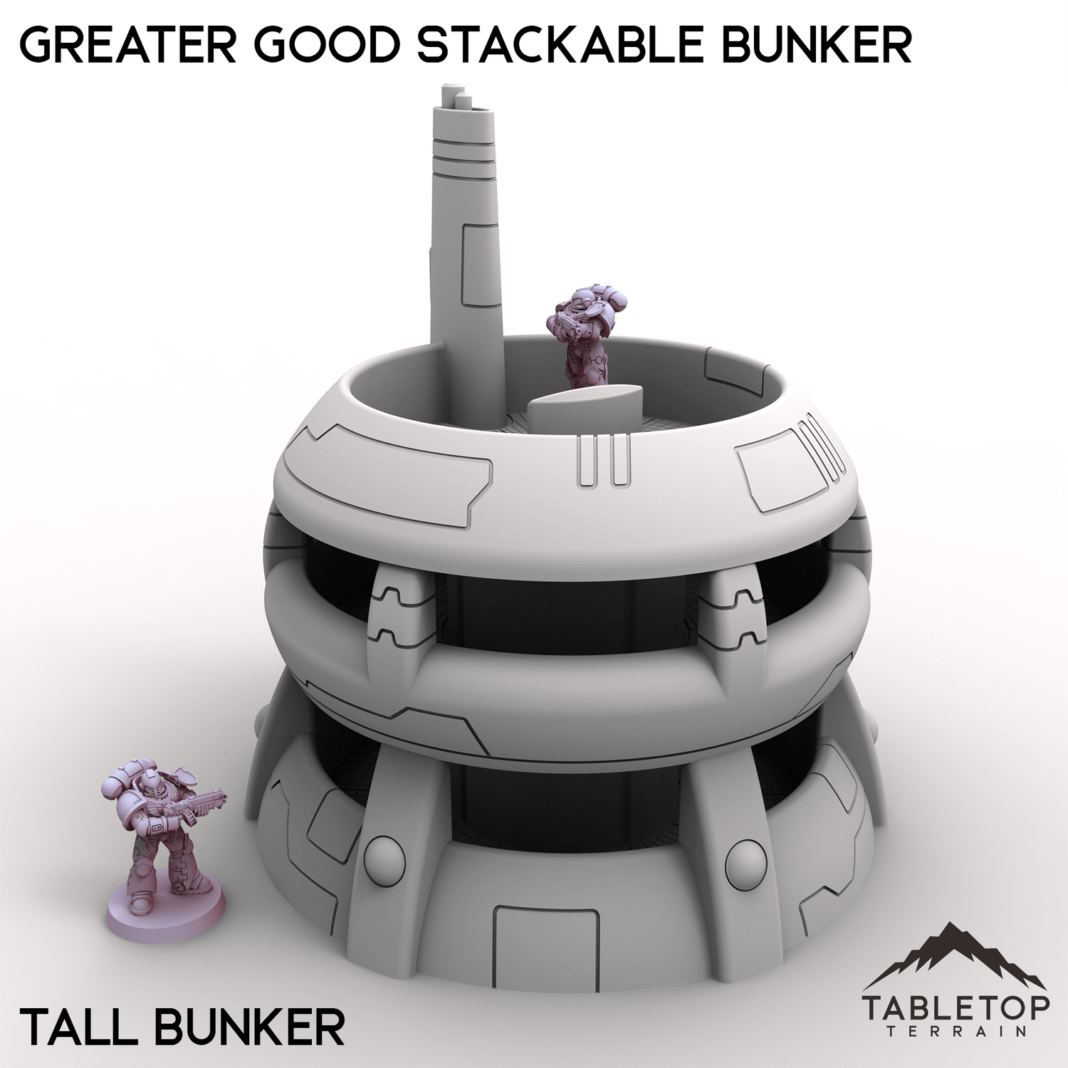 The Greater Good Stackable Bunker is a set of xenos terrain that comes in two different configurations. The bunkers are designed for sci-fi wargames.