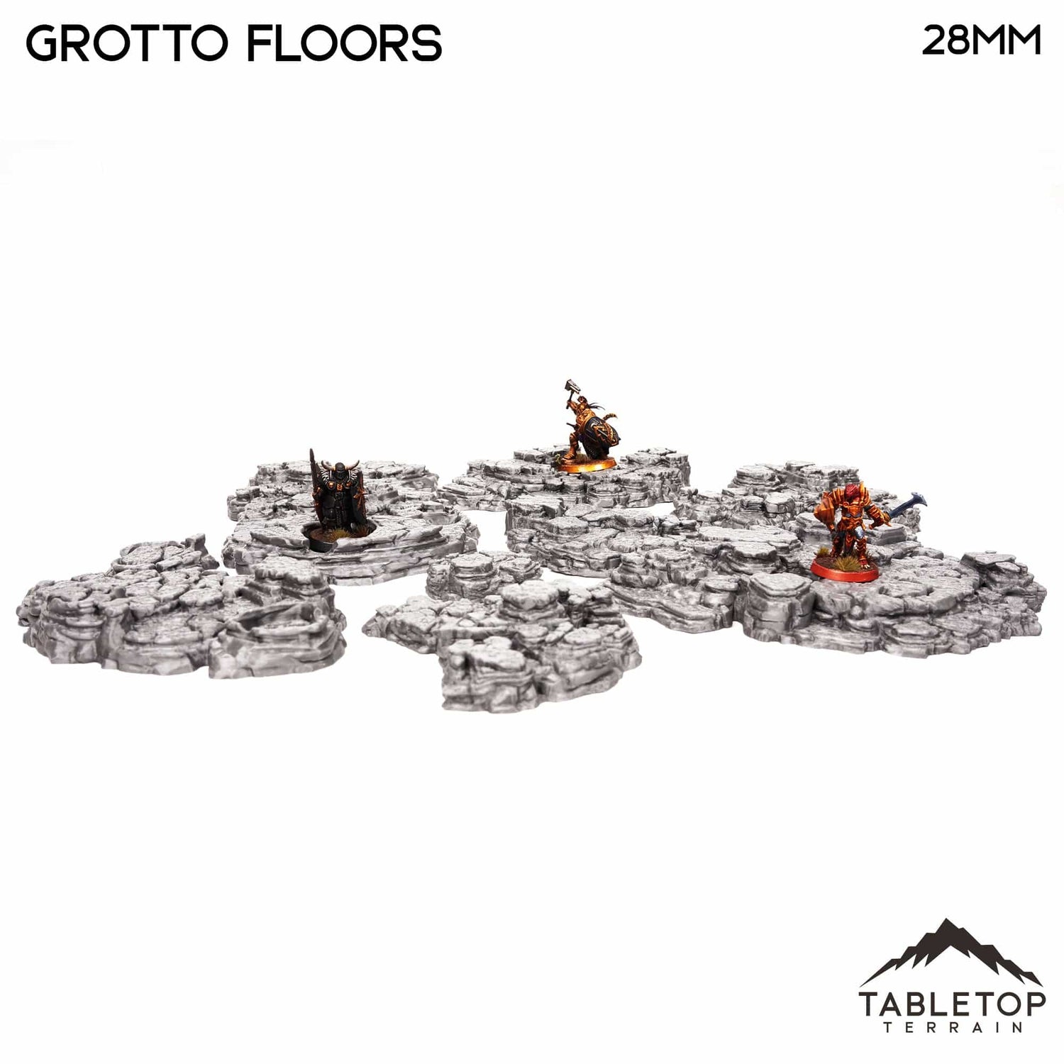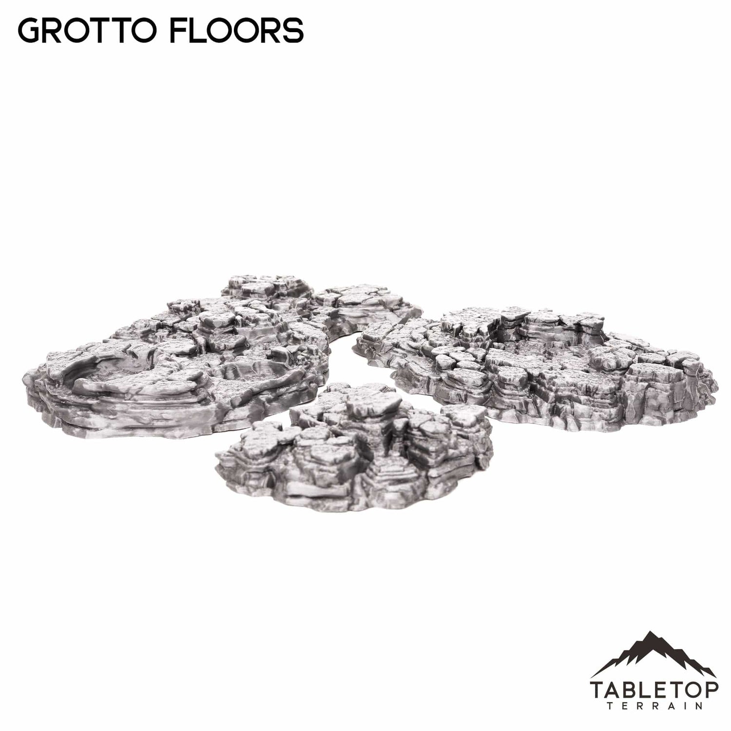 The Grotto Floors are a set of scatter terrain that can be set apart or notched together for a long path. They come in three variations, normal grotto floors, crystal grotto floors, and shroom grotto floors. They are all designed to fit in with the rest of the Goblin Grotto set. They are perfect for Dungeons and Dragons DND, Age of Sigmar AOS, Kings of War, Malifaux, Frostgrave, or other fantasy games.