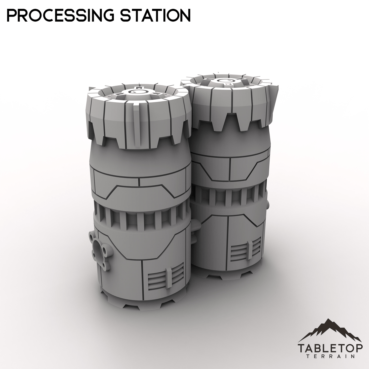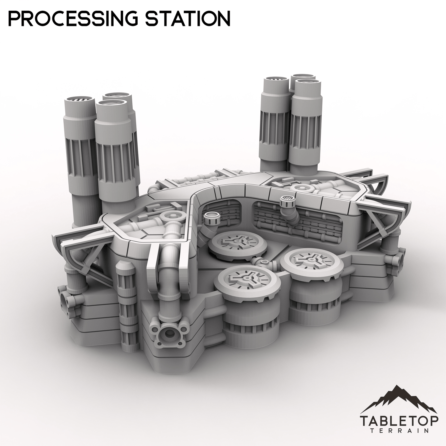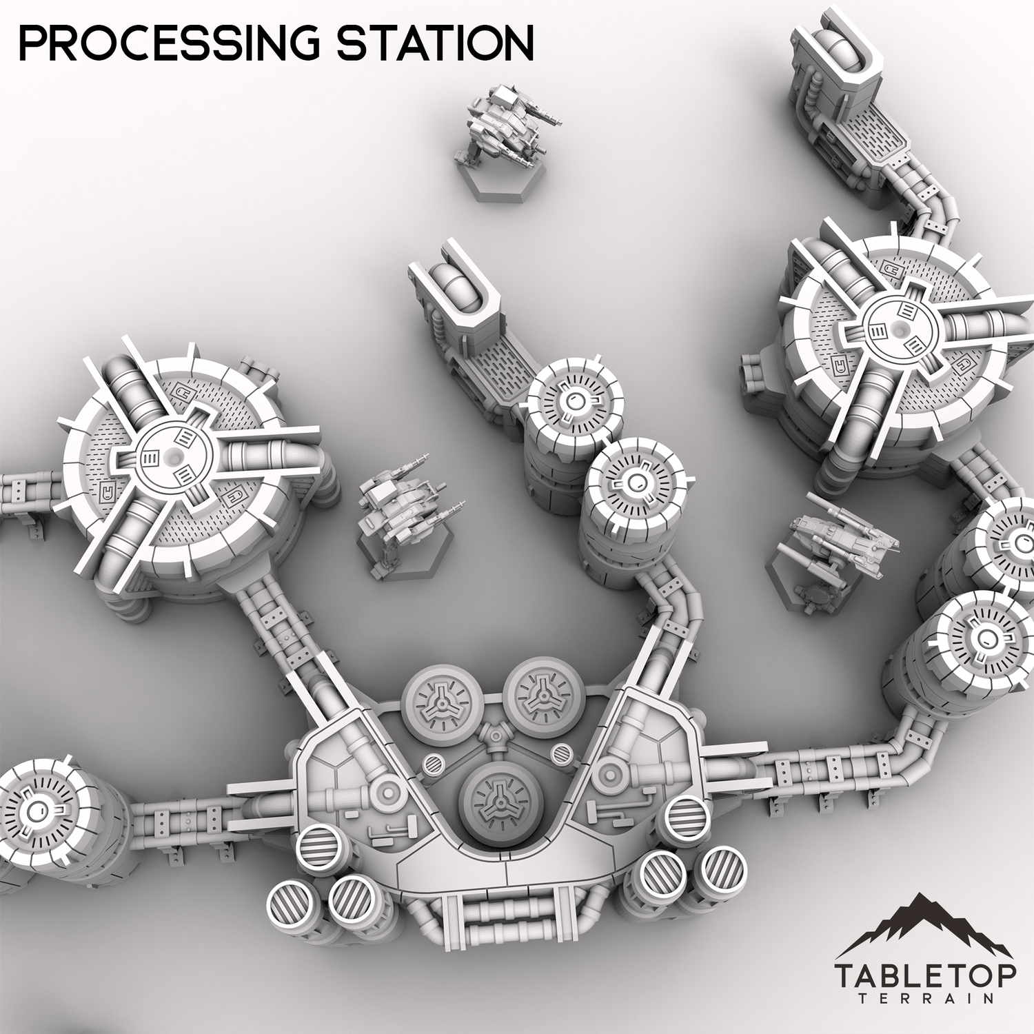 HEXTECH Industrial Fluidworks is a modular set of processing and storage plants, complete with a full set of pipes and connectors. The connections in the Fluidworks set are all fully compatible with the Power Complex sets. The Fluidworks can be used piece by piece as terrain scatter, or arranged into whatever type of layout you need. The styling of the Fluidworks set is made to match the look and feel of the Trinity City collection as well.