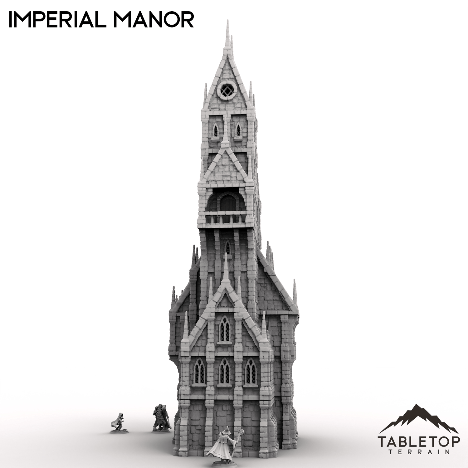 Towering at an impressive 8-stories tall, the Imperial Manor is an imposing sight to behold. Each floor of the manor is open, detailed, and able to hold minis. The set uses small spikes to be held together, so no glue is needed. The 2 doorways are also function, with small doors that can swing open and closed. The set is technically designed for fantasy tabletops, like our other Imperial buildings (such as the Imperial Bridge or Imperial Bastion), but it will work fine for any 28/32mm scale game.