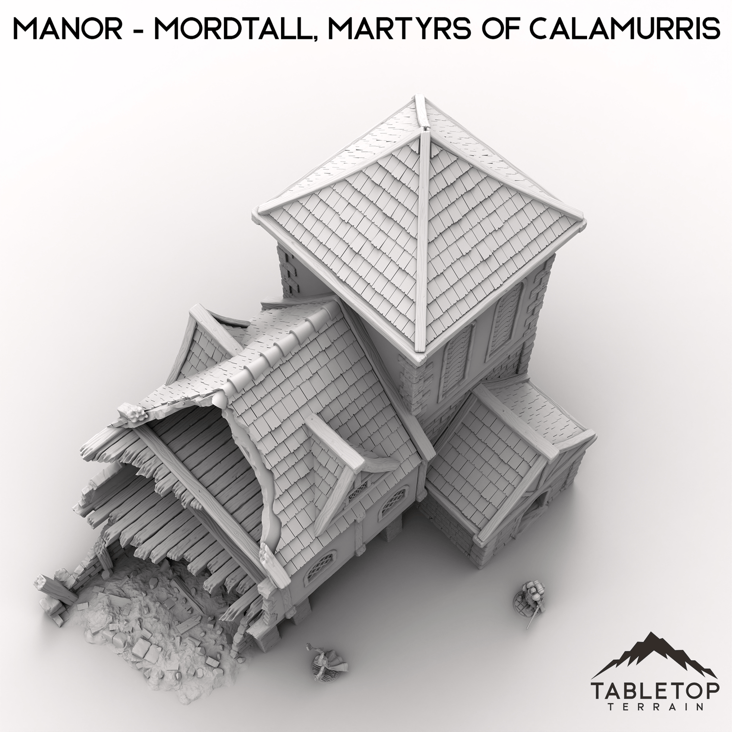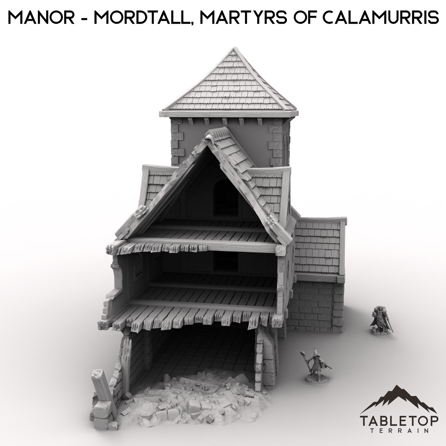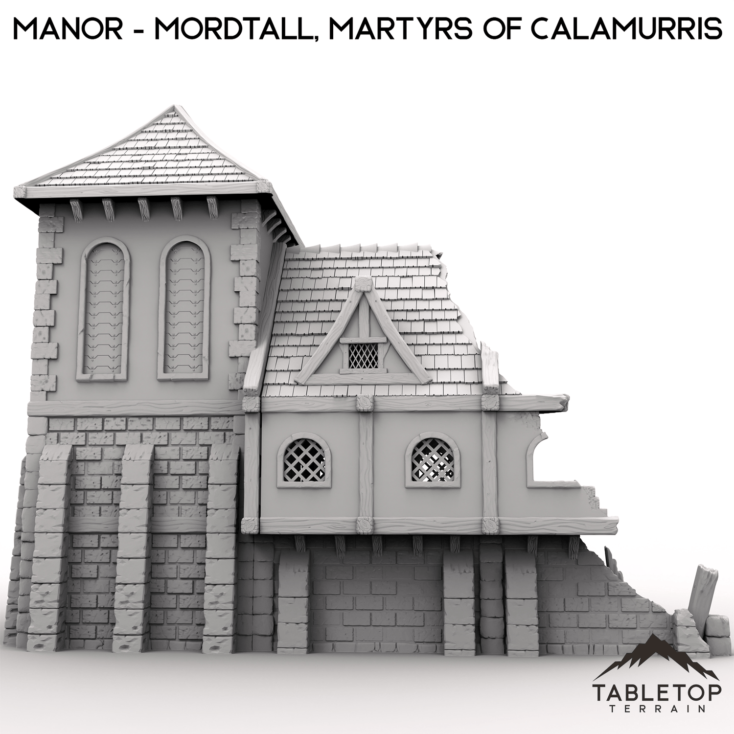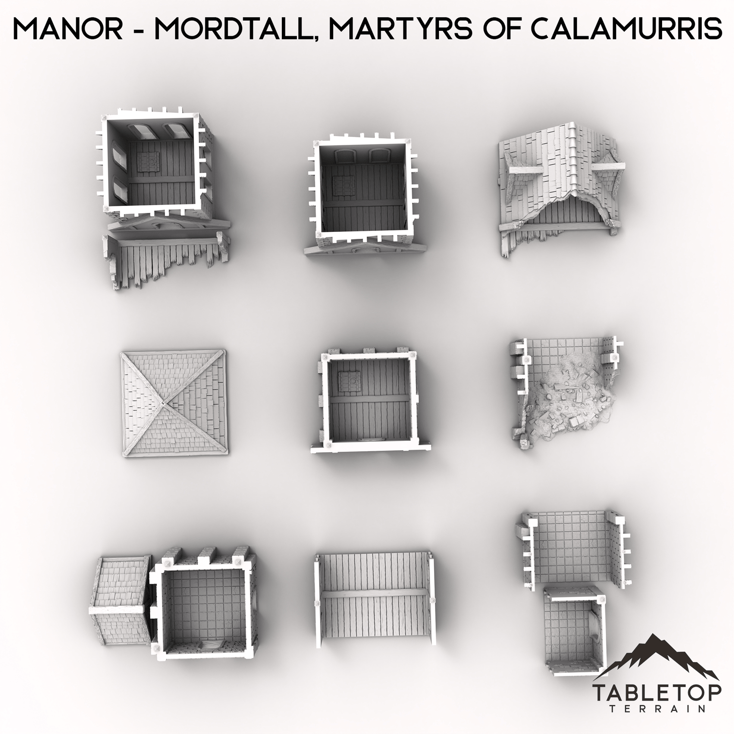This Manor of the Mordtall, Martyrs of Calamurris set, is the remnant of a once grand building. This set of ruined medieval-style structures is perfect for tabletop wargaming, RPGs, or dioramas. It includes a variety of detailed pieces, from crumbling homes and a broken watchtower to a damaged stone bridge and scattered rubble. These terrain pieces bring a sense of realism and atmosphere to any game, making them an excellent addition to your tabletop setup.