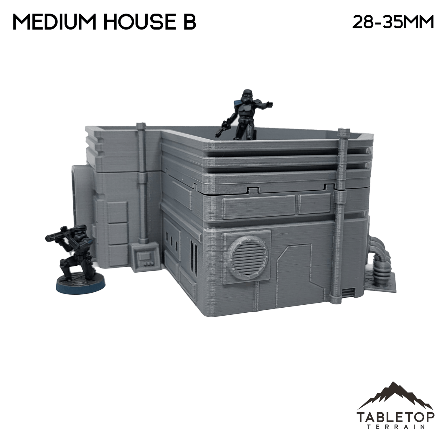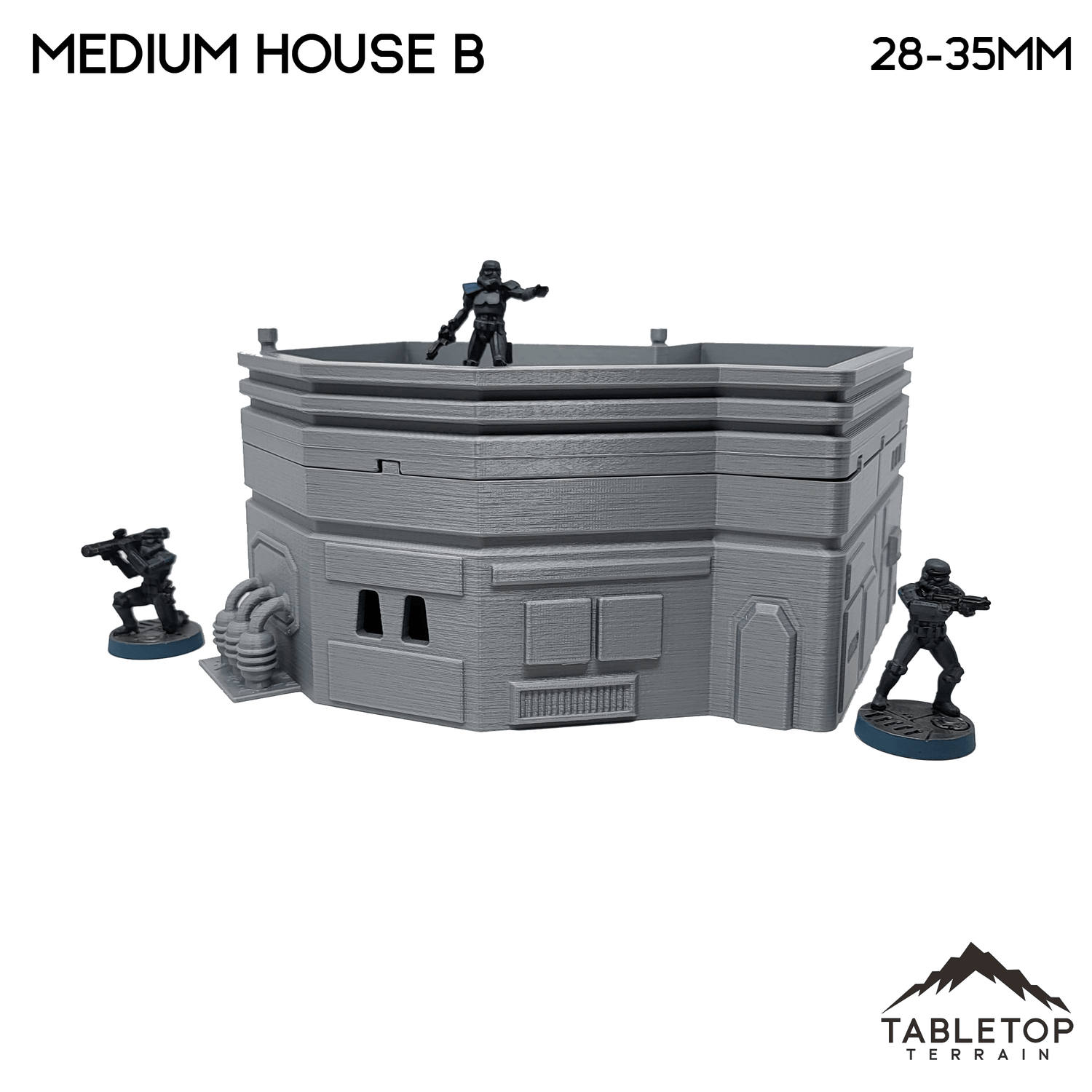 The Midrim City Medium House B is a fantastic addition for your Sci-Fi themed tabletop. It would work great for Star Wars Legion, Shatterpoint, or other Sci-Fi games. The Guild is printed in 40mm, 28-35mm (1:47), 20mm, and 15mm scale with other scales available by request. The 40mm scale is recommend for Shatterpoint and the 28-35mm scale for Legion.