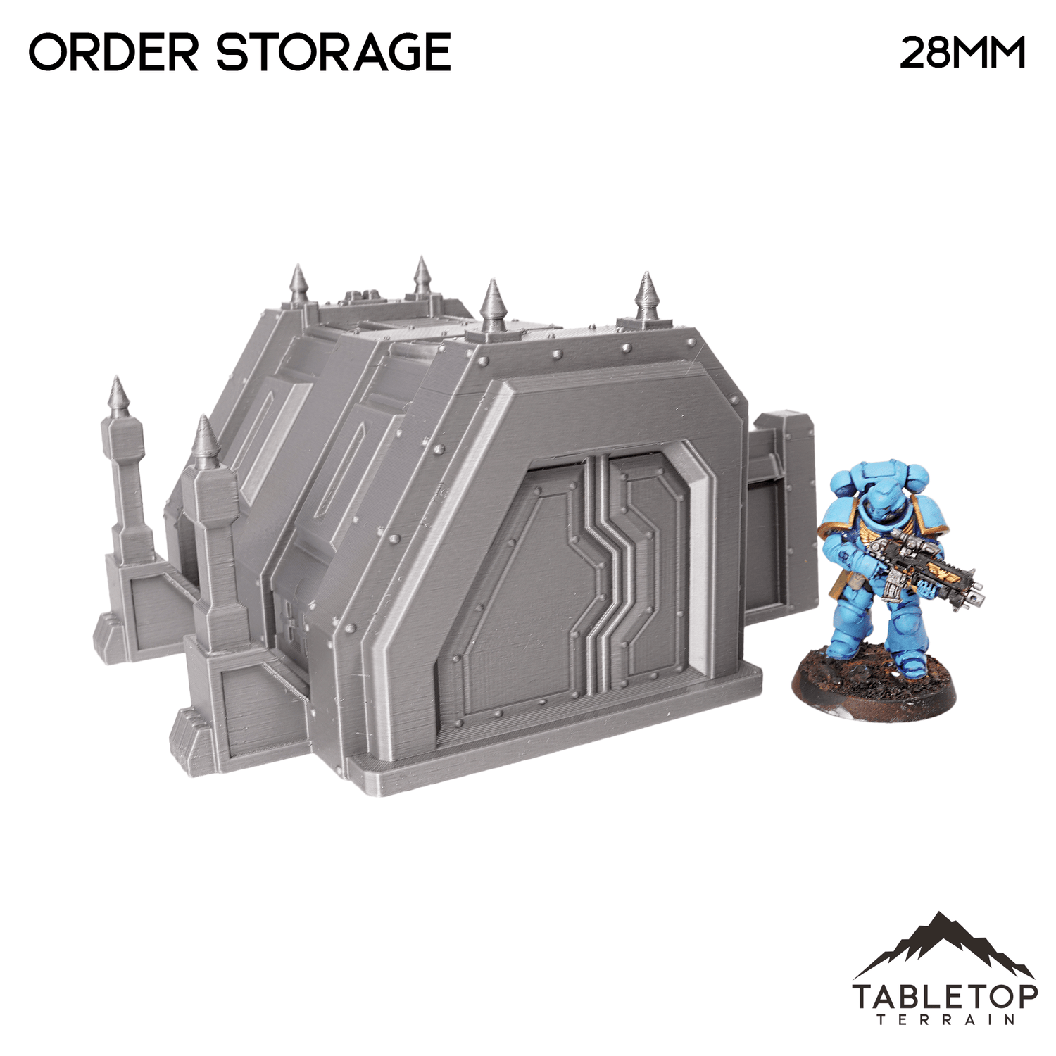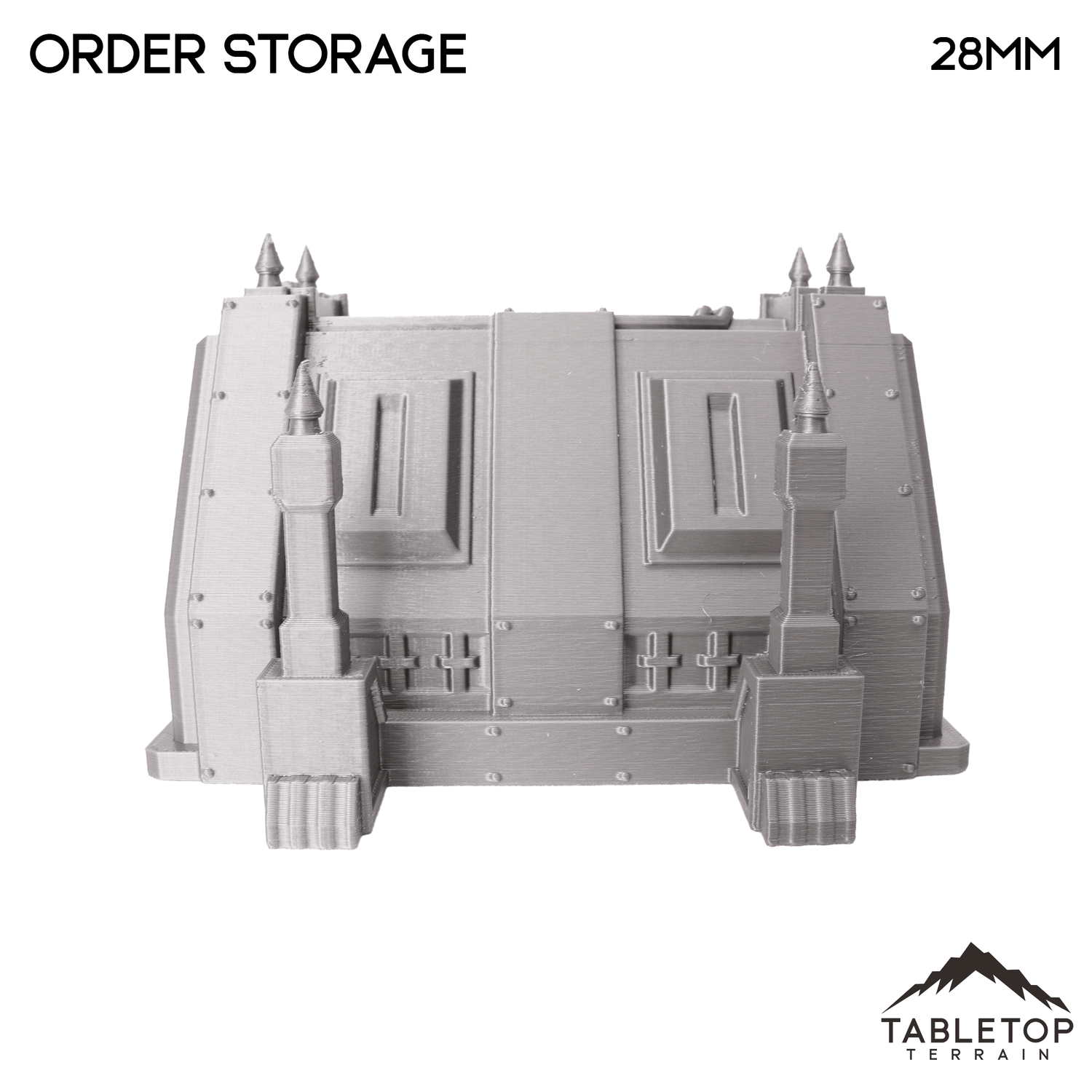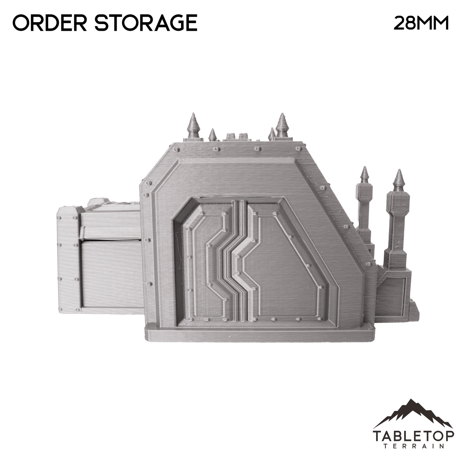 The Order Storage is a singled building, printed in one piece to make it easier for setup and storage. This is part of the Gothic Sanctuary collection, and is designed to fit nicely with other sets from said collection. Use this building on its own as scatter, or add it into a larger setup for more depth to any tabletop. The Order Storage is designed for sci-fi wargames, but can be used with any system.