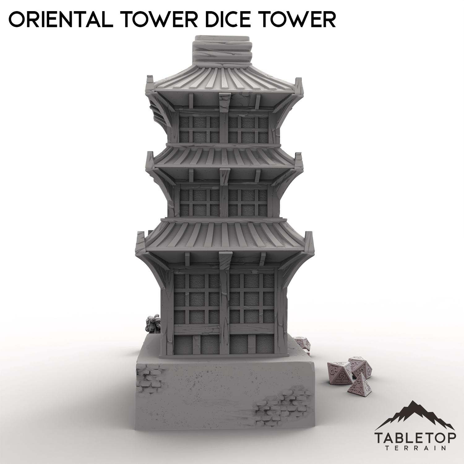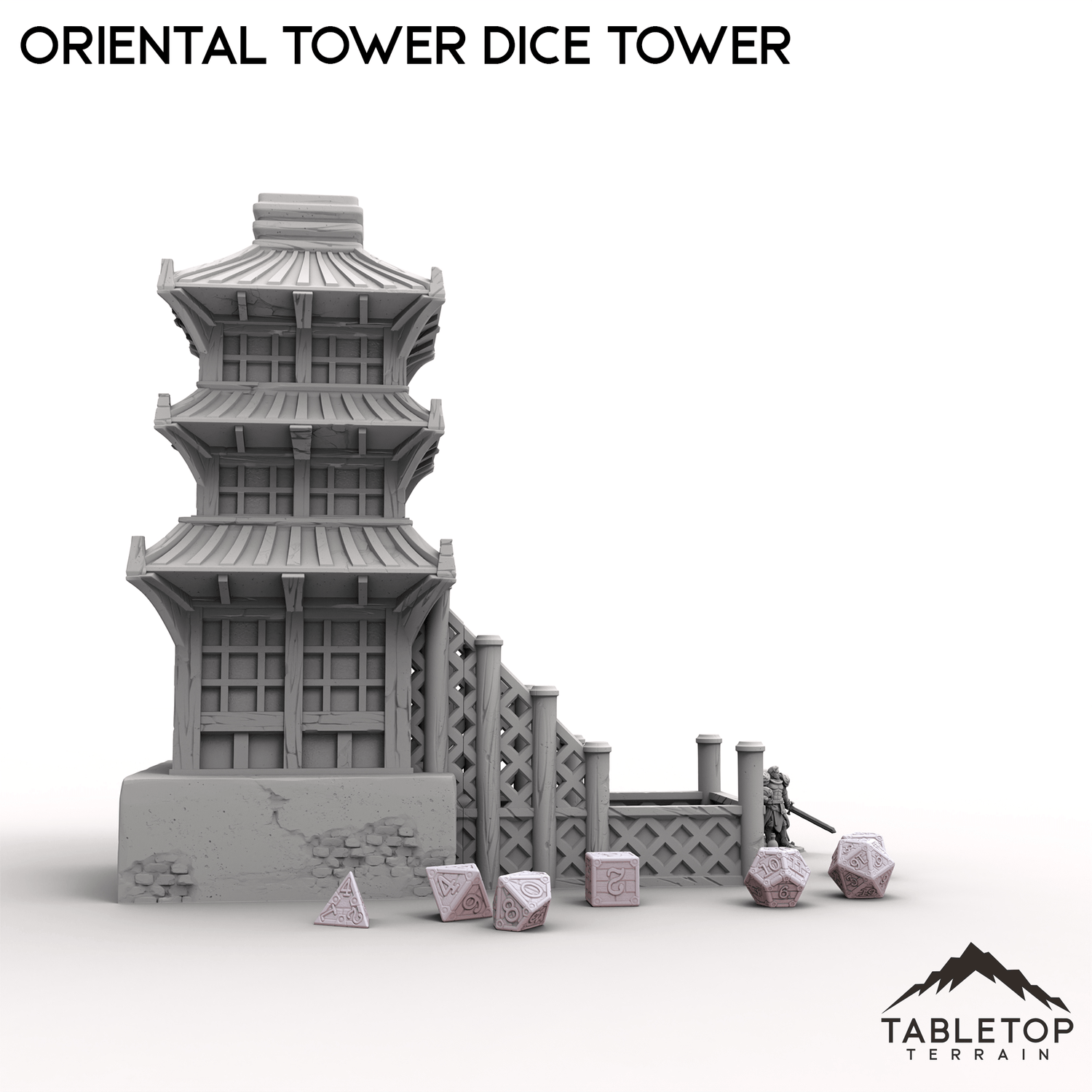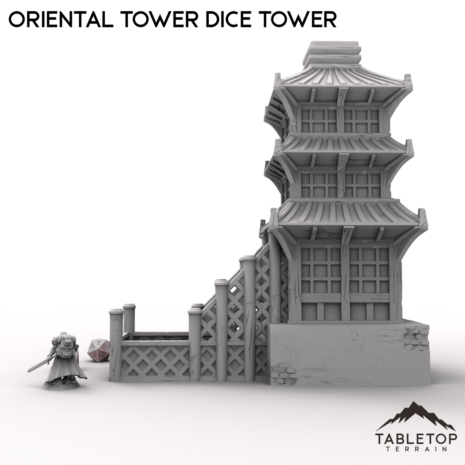 This Oriental Tower Dice Tower brings an elegant, ancient flair to your rolls. Drop the dice in from the top, and they tumble down through the tower before emerging at the base, rolling down the decorative stairs. A perfect blend of function and style for your tabletop adventures.