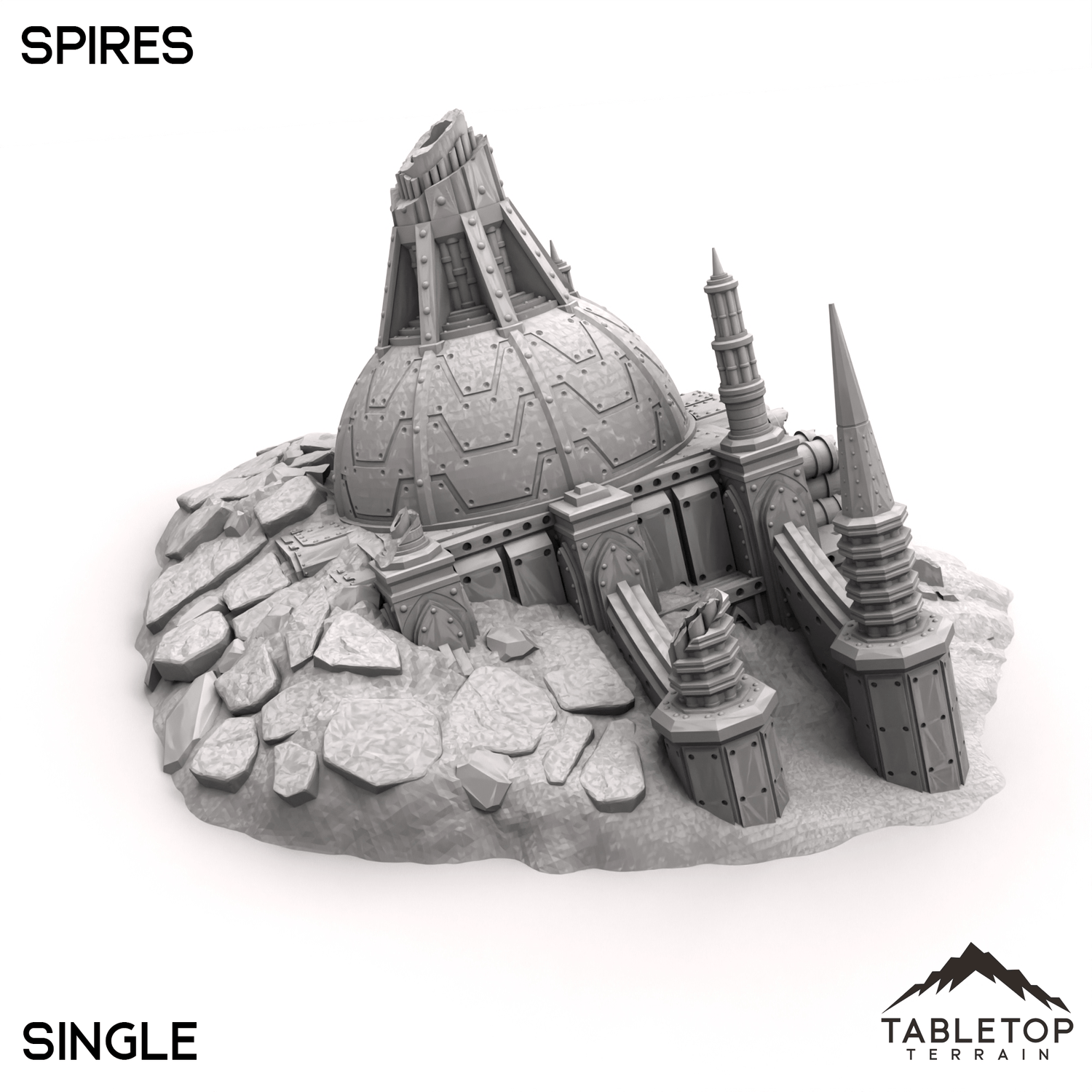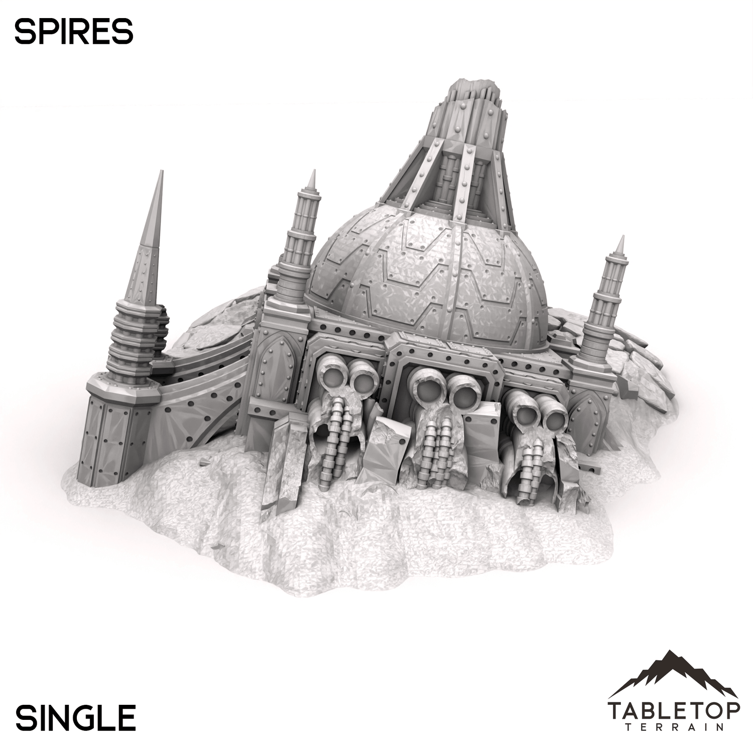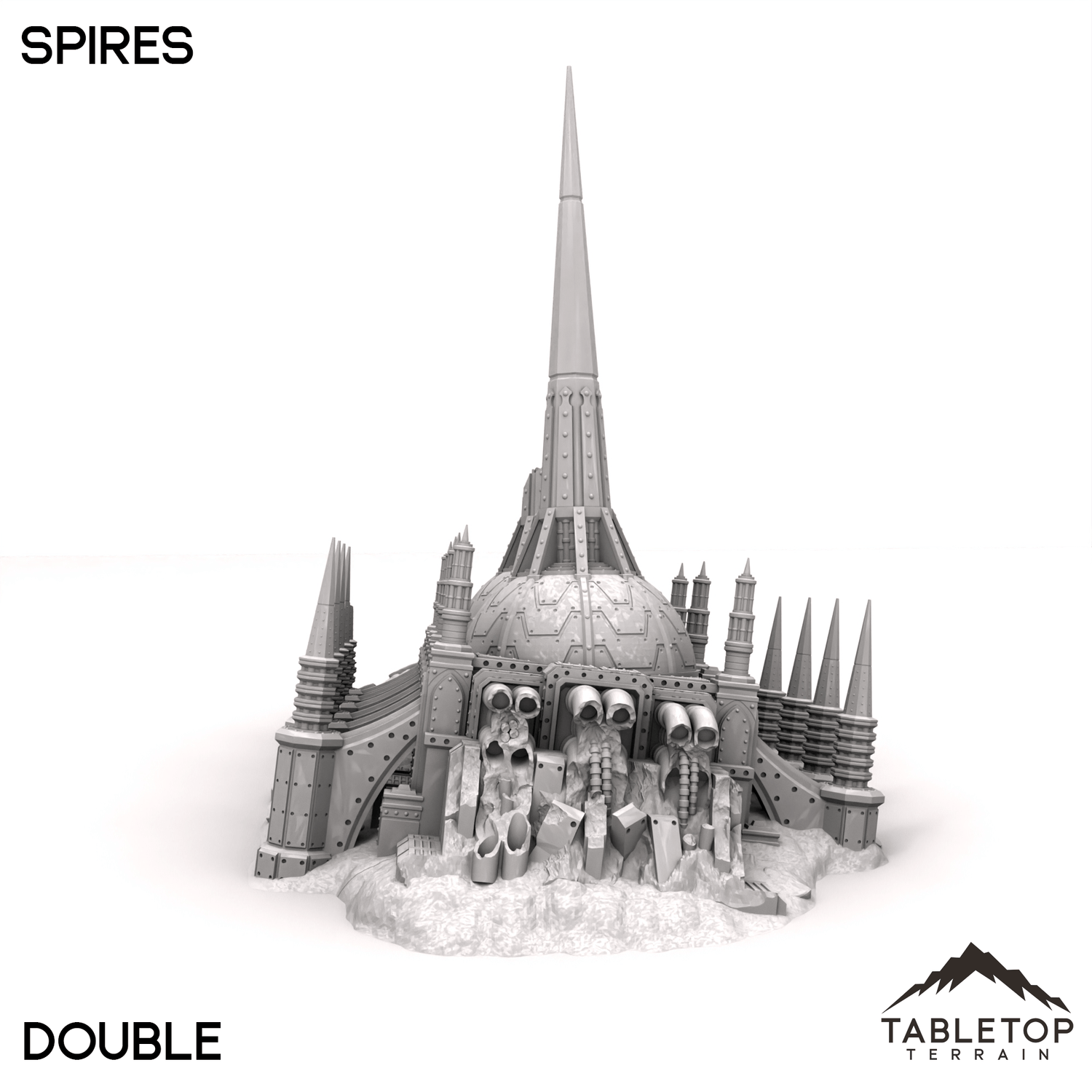 Discover the Spires of the Abyssal Redeemer, towering remnants of the crashed flagship that rise ominously from the wreckage. These spires, whether standing alone or in pairs, are adorned with intricate designs. Perfect for strategic vantage points, or discovering hidden secrets, the Spires provide a haunting and atmospheric element to your sci-fi tabletop adventures.