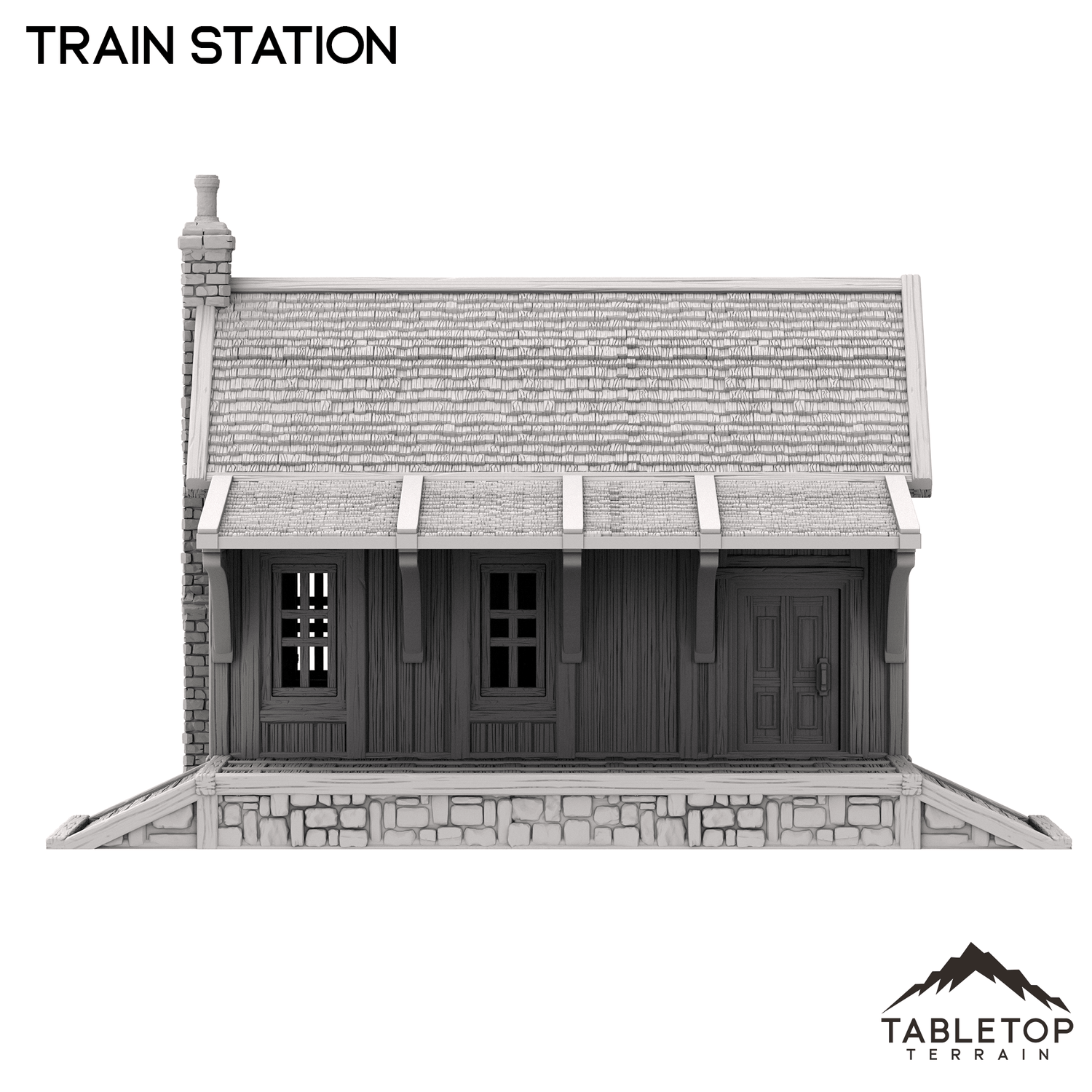 The Train Station is an Old West themed building. The roof is removable for interior miniature placement.