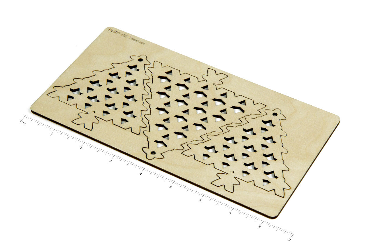 Bring your love of boardgaming to your holiday decor with this exclusive set of 3 Treeple ornaments! Precision cut from 1/8" Baltic Birch, these ornaments will add tabletop magic to your holiday decor! Can be painted, stained or accessorized. Each features a hole to add string, ribbon or hooks. Make great gift tag accessories too!