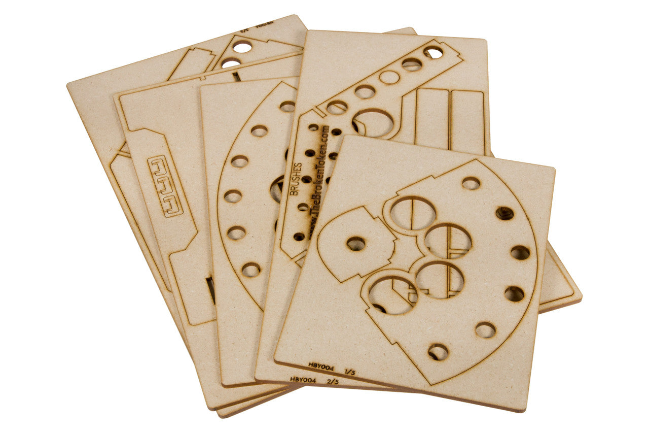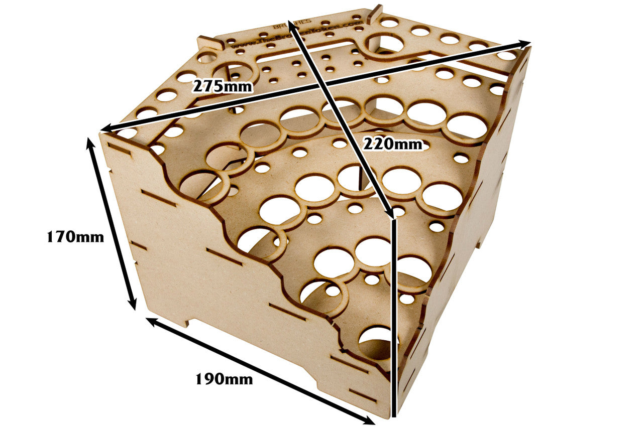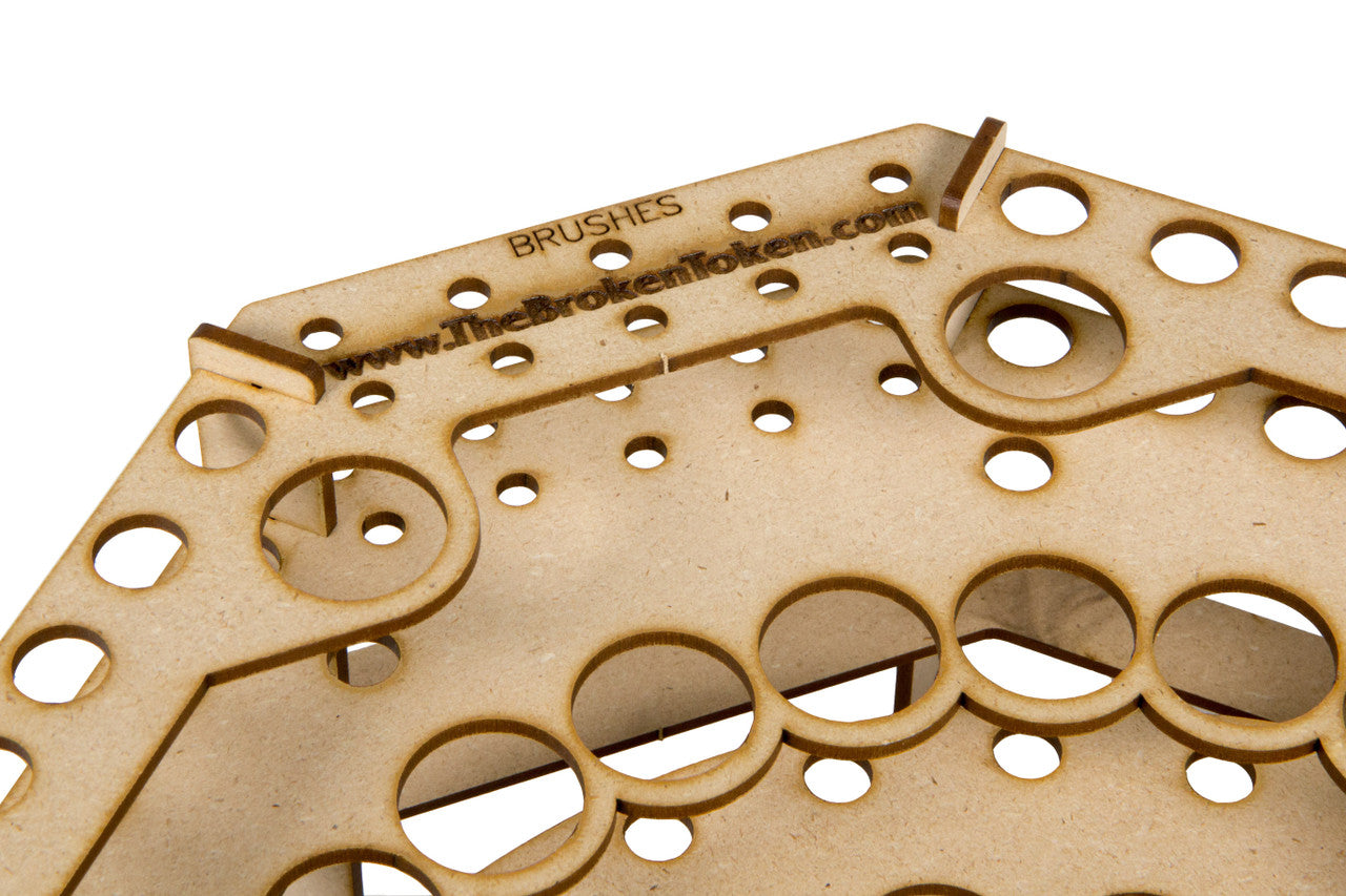 Your miniatures may be works of art, but a disorganized desk certainly isn't. Get your paints and brushes in line with our Modular Paint Rack system! These MDF racks hold your paint pots, bottles and brushes in a tiered layout for easy organization and access when customizing your game pieces. Multiple racks can be combined into a larger system using the included clips!