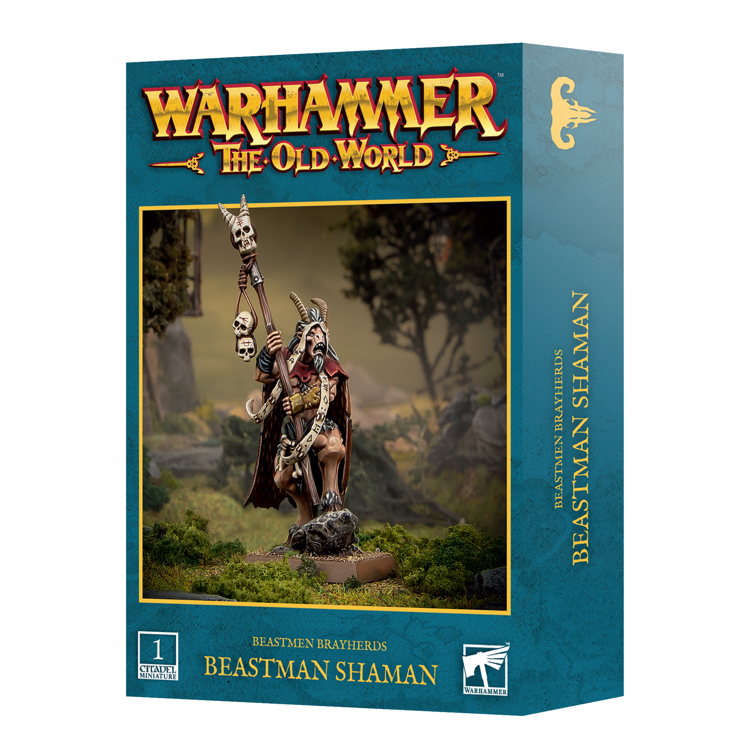 This multipart plastic kit builds one Beastman Shaman, a vital spellcaster for your Beastmen Brayherds army in Warhammer: The Old World. Wielding a gnarled Braystaff, this model can be used as either a Bray-Shaman or a more powerful Great Bray-Shaman, perfect for unleashing devastating magic and empowering your warherd.