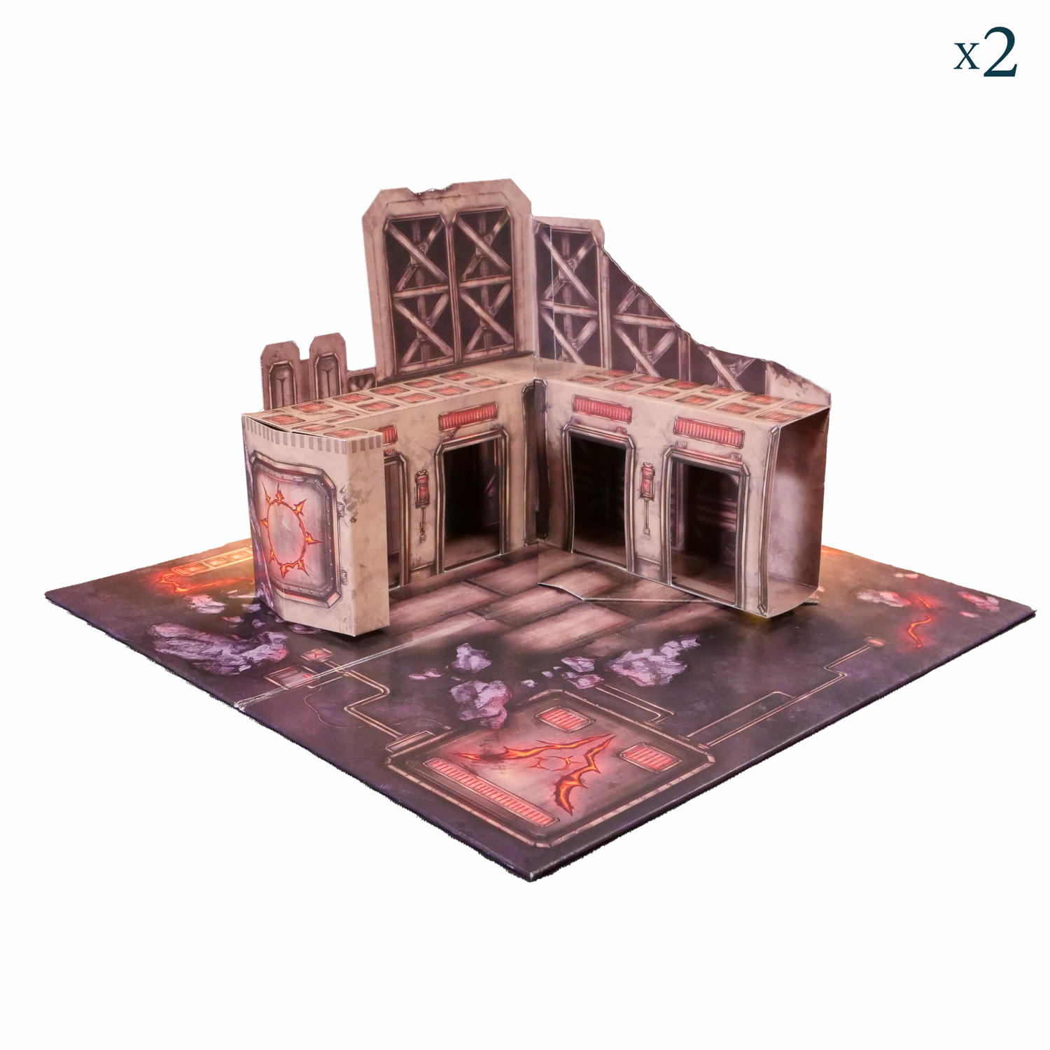 Titans Terrain is an innovative pop-up terrain set designed for games of Warhammer 40k, Age of Sigmar and more. The Forgotten Furnace Core Set comes with 12 square tiles that pop-up to instantly create a 45”x60” board. You can also rearrange the tiles to create hundreds of unique battlefields in just seconds.