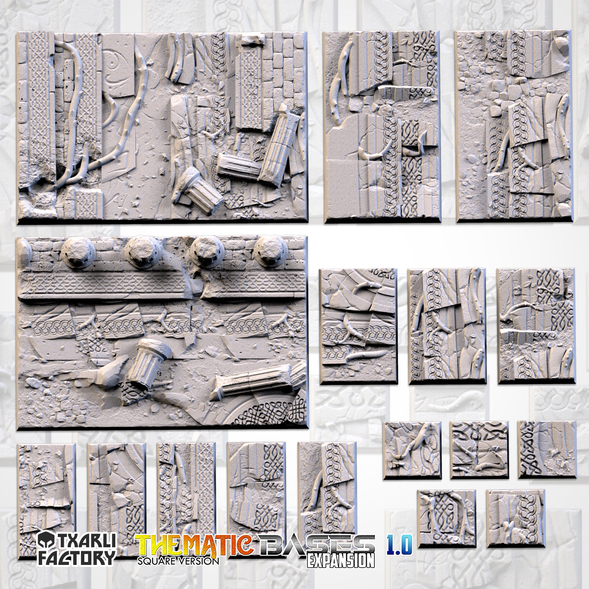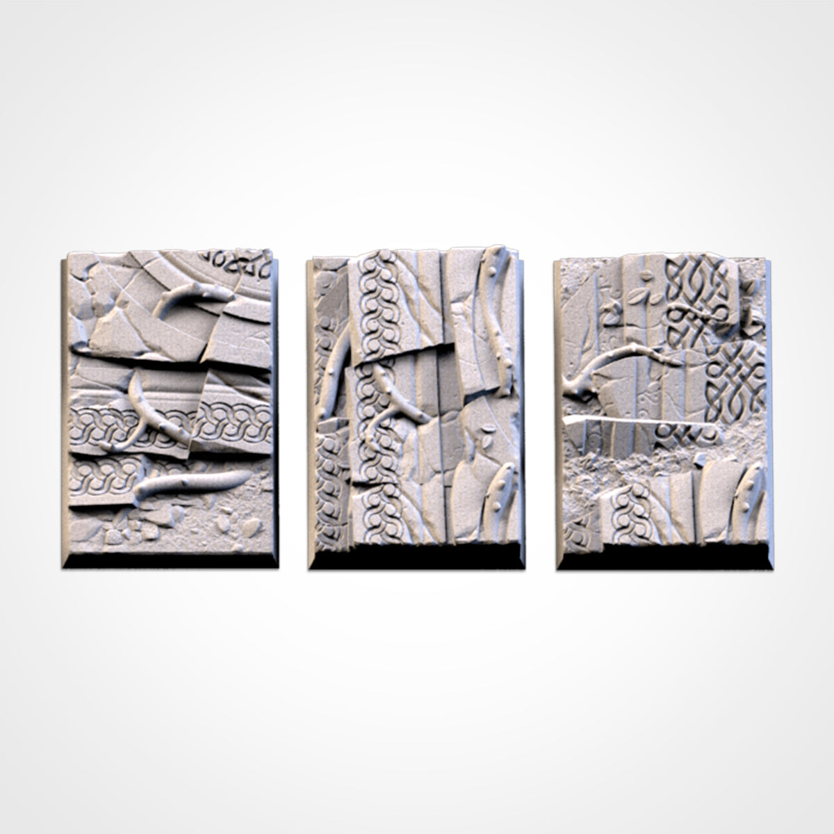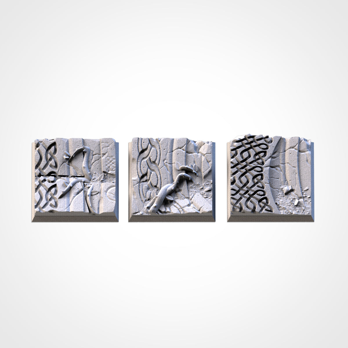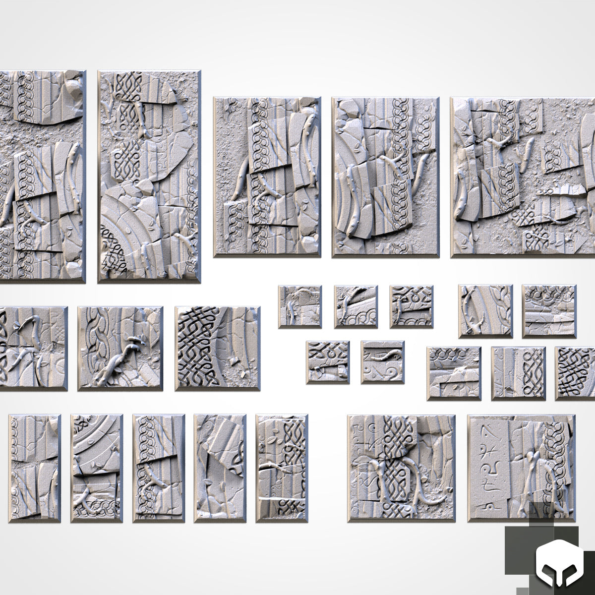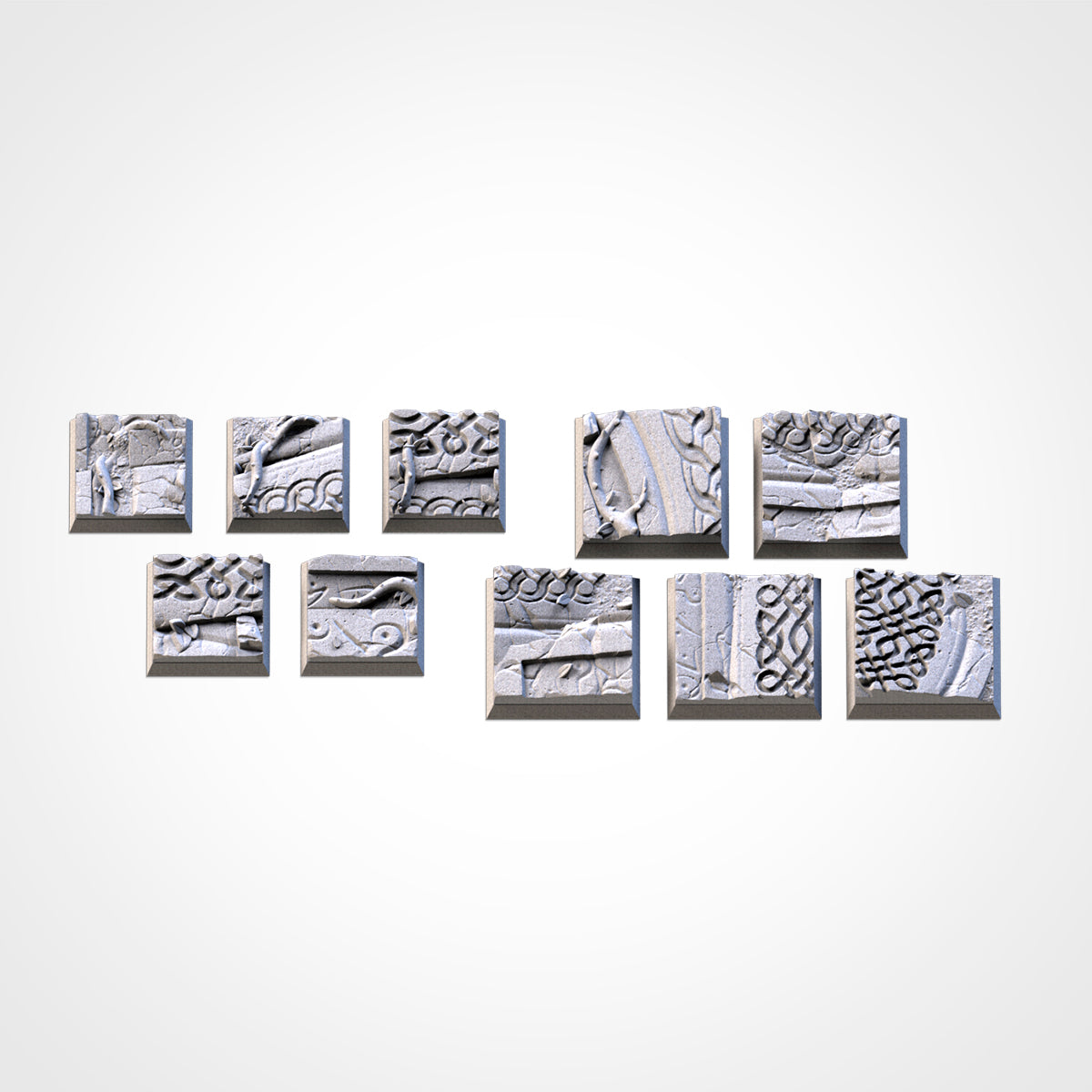 Crafted by Txarli Factory and skillfully printed by Printology Labs, the 'Ancestral Ruins' base set brings your miniatures to a site steeped in ancient power. Crumbling stonework and intricately carved Celtic-style runes litter the ground, hinting at a lost civilization and its mystical past. Perfect for fantasy or historical settings, these bases evoke the majesty and mystery of a bygone age.