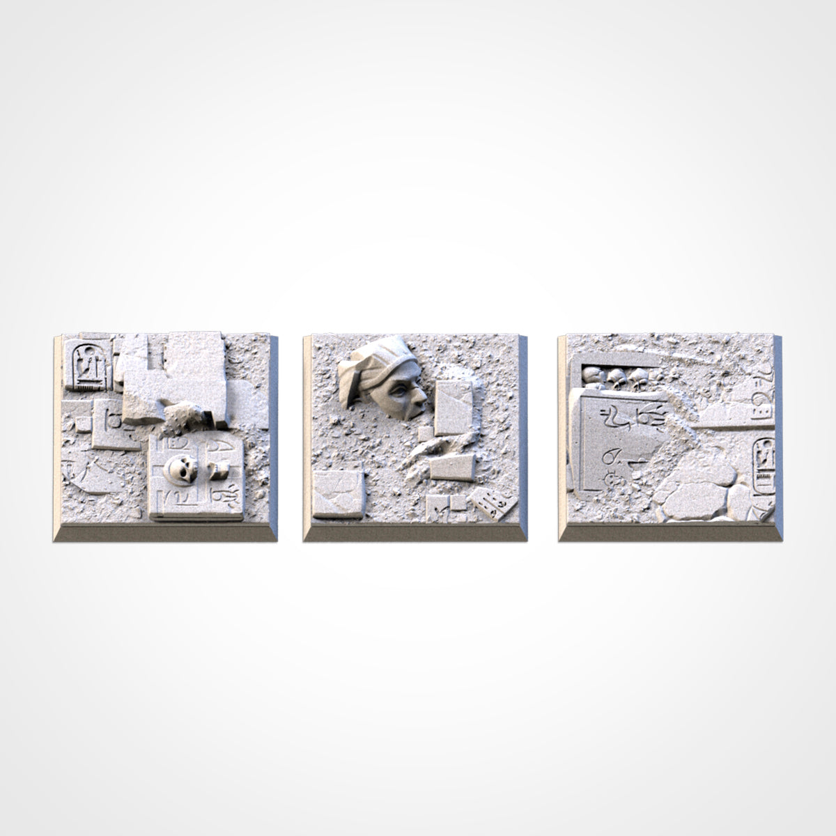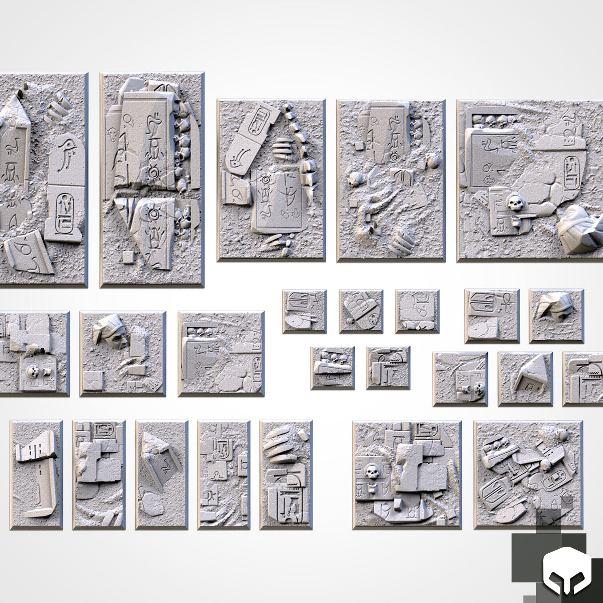 Designed by Txarli Factory and flawlessly printed by Printology Labs, the 'Egyptian' base set brings your miniatures to the heart of a mystical desert civilization. Elaborate stonework carved with intricate hieroglyphics rises from the sand, evoking the grandeur of an ancient world filled with secrets and power. Perfect for desert-themed battles or arcane adventures, these bases add an aura of majesty and mystery to your tabletop.