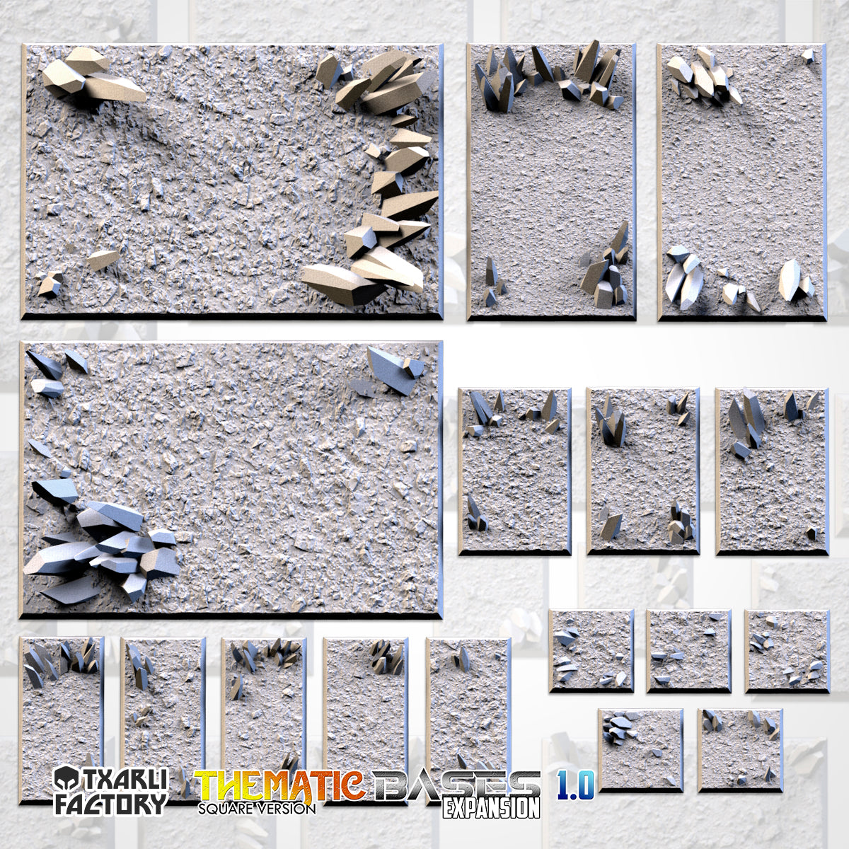 Designed by Txarli Factory and meticulously printed by Printology Labs, the 'Glass' base set transforms your miniatures into explorers of a crystalline wonderland. Jagged crystal formations rise from rocky terrain, creating the shimmering, ethereal atmosphere of a hidden crystal cave. Ideal for magical settings or alien landscapes, these bases add a touch of brilliance and mystery to your tabletop.