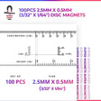 100pcs 2.5mm x 0.5mm (Approximately 3/32" x 1/64") Disc Magnets