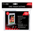 Ultra PRO's ONE-TOUCH & Stand are premium trading card storage & display designed as the final destination for your collectible trading cards. The two-piece ONE-TOUCH holders are uniquely designed with slide-in hinges and magnetic closure so you'll never have to use a screwdriver again. The holder uses UV-blocking additives to protect your card from harmful UV rays and is made with non-PVC materials to provide acid-free protection - ensuring your valuable hit retains its condition while under the display. This model can hold standard size cards (2½ in. x 3½ in.) up to 130pt in thickness. The all-black base is designed to hold your favorite collectible card in place at a slight angle for superior presentation.