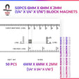 50pcs 6mm x 6mm x 2mm (Approximately 1/4" x 1/4" x 1/16") Block Magnets
