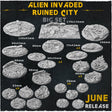 Crafted by Zabavka Workshop and expertly printed by Printology Labs, the 'Alien-Invaded Ruined City' base set brings your miniatures to the shattered remnants of a once-thriving metropolis. Crumbling buildings, broken streets, and alien growths intertwined with human architecture create a haunting atmosphere of destruction and conquest. Perfect for sci-fi or post-apocalyptic settings, these bases immerse your tabletop in the chaos of an alien invasion.