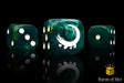 Rule with authority! These contain a mix of swampy dark greens swirled with white and metallic gold streaks and inlaid with a flawless white; hand mixed resin 16mm dice. The symbols are on the 6 side. Our premium dice now come in a unique reusable tin, when purchased in x25 and x50 counts.