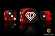 Featuring a base of bloody reds and black warp swirls and inlaid in a pure white; resin 16mm dice. These are Matte finish dice. The symbols are on the 6 side.