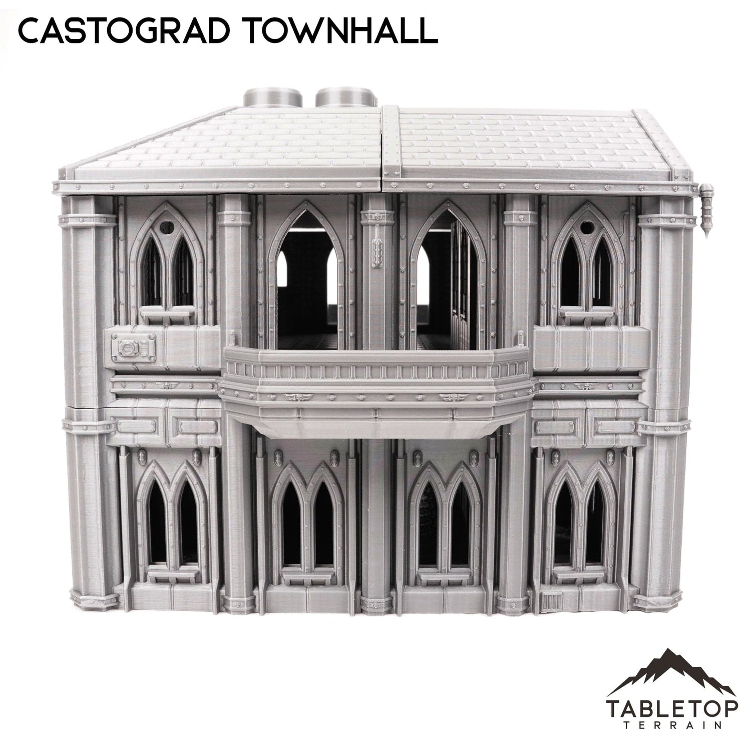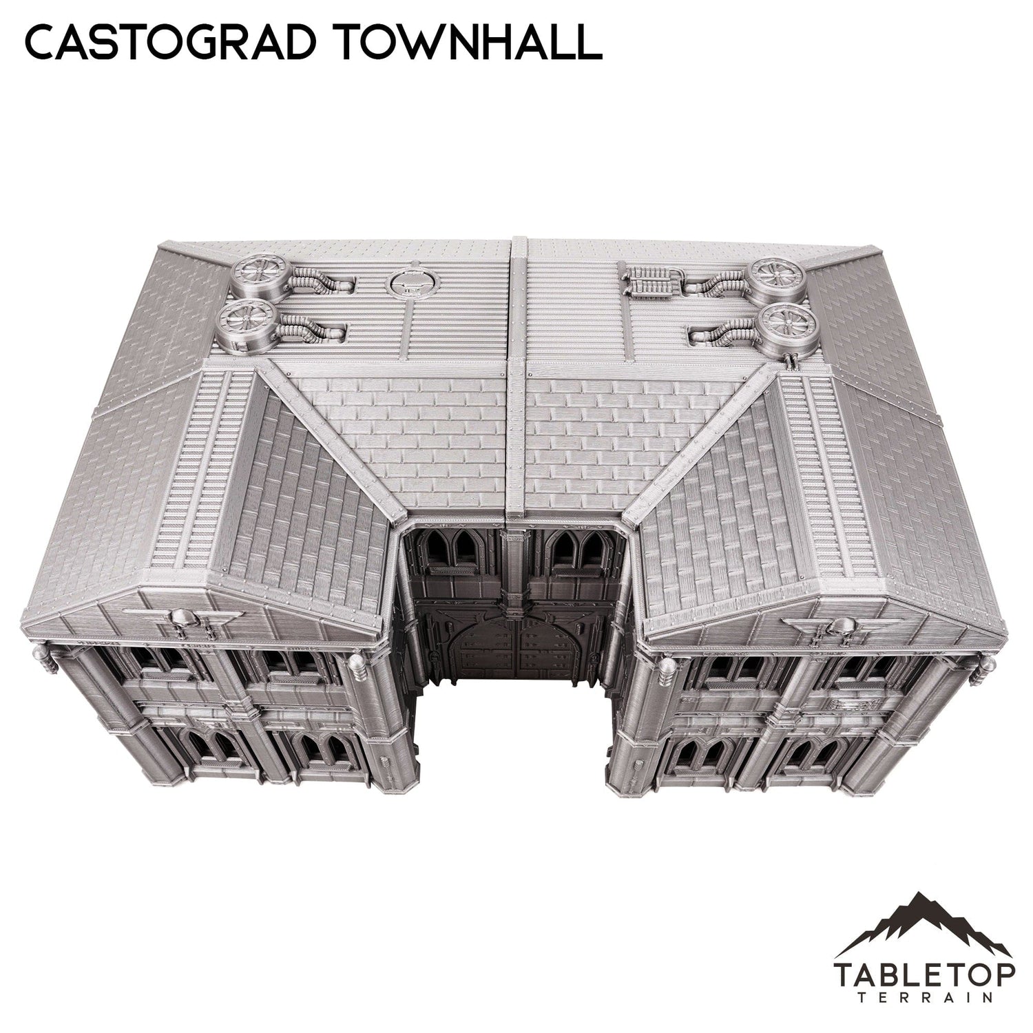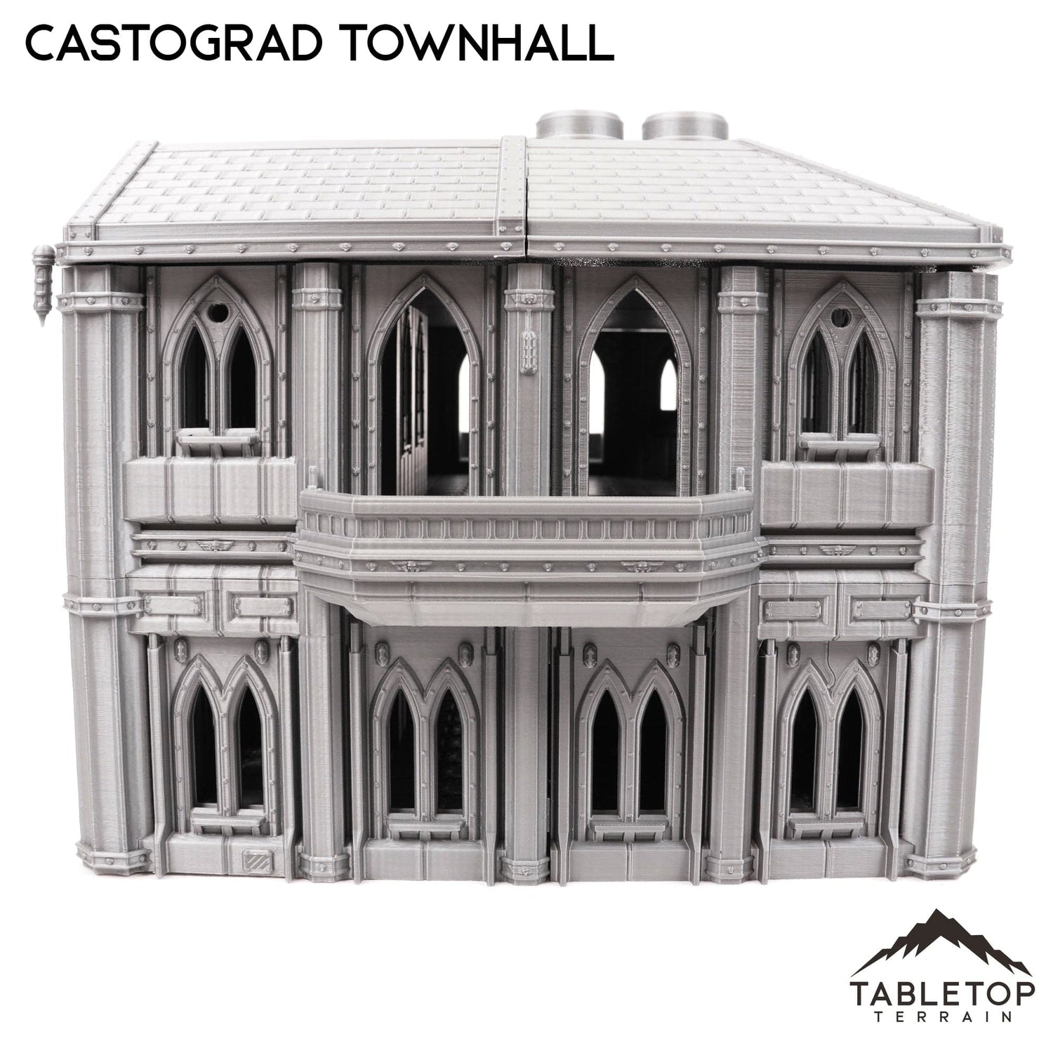 Castograd, the jewel of the old empire is now in disarray. This Townhall sits in the center of the Capital. Each level comes in multiple pieces that snap together and there are some small lanterns that attach to the top floor. The building is designed for sci-fi wargames.