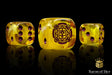These contain a base of magical yellows, imbued with arcs of stark white and inlaid with an ancient purple; resin 16mm dice. The symbols are on the ONE side. Yes, the ONE side.