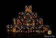 Ready to empty the vats and march for war! These contain a translucent black ink swirled inside a millennia old crystal clear dice and inlaid with a metallic gold; resin 16mm dice.  The symbols are on the ONE side. Yes, the ONE side.