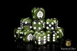 Feeling like an Apex Predator?! These contain a mix of camouflaged greens swirled with reclusive blacks and inlaid with an easily readable white; resin 16mm dice. The symbols are on the ONE side. Yes, the ONE side.