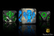 In a galactic war, raging through centuries, war is determined by skirmishes. Where individuals make or break the battle, each battle decides the war... ready your forces for the skirmish of a lifetime! This set of premium hand-mixed resin dice feature unique symbols on all sides, compatible with Shatterpoint, and other skirmish games.