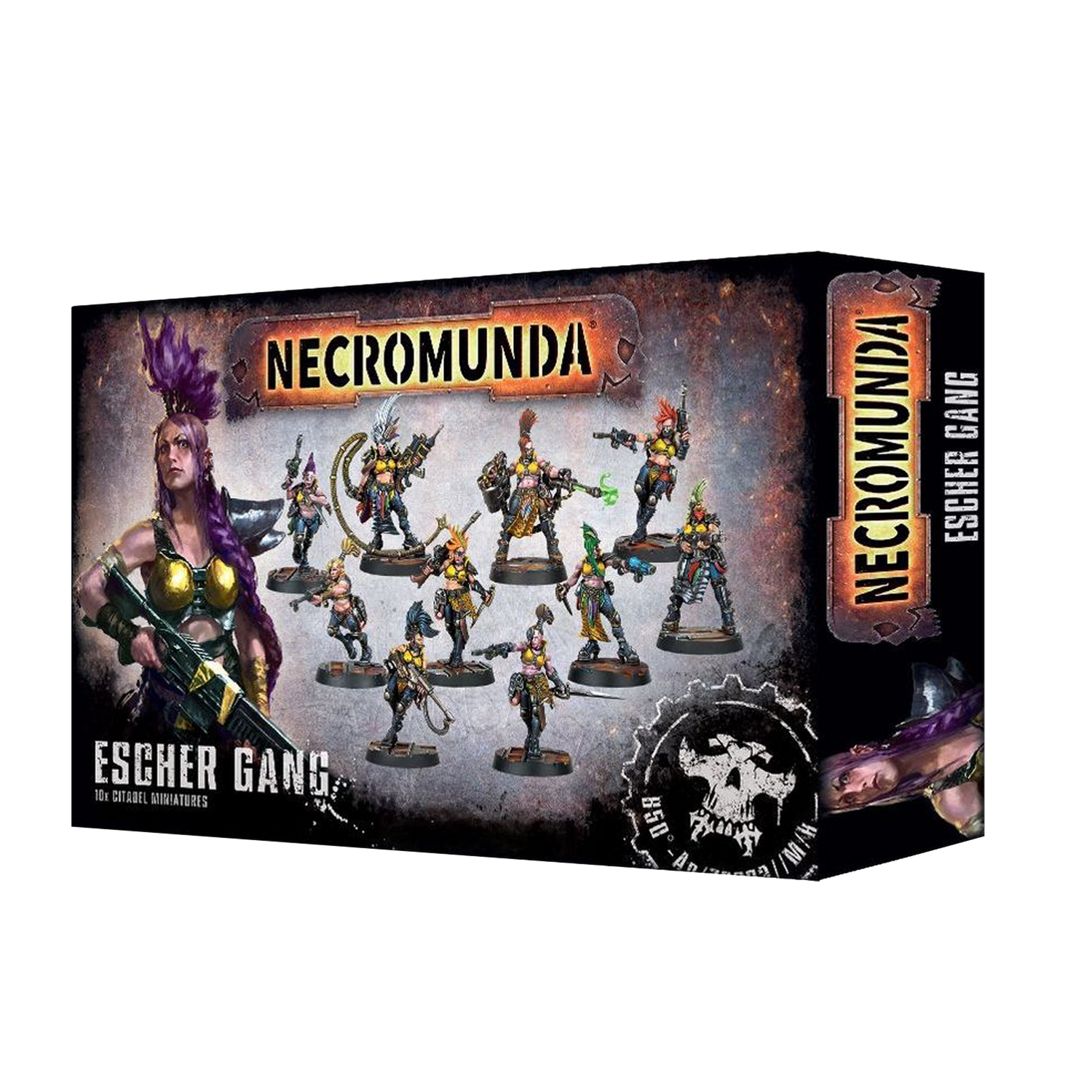 Assemble your own Escher gang – or add to the miniatures found in the Necromunda: Underhive box – with this set of 10 plastic miniatures. They’ve been designed to provide you with a huge amount of variety and options in assembly, meaning every gang will be unique. Included: