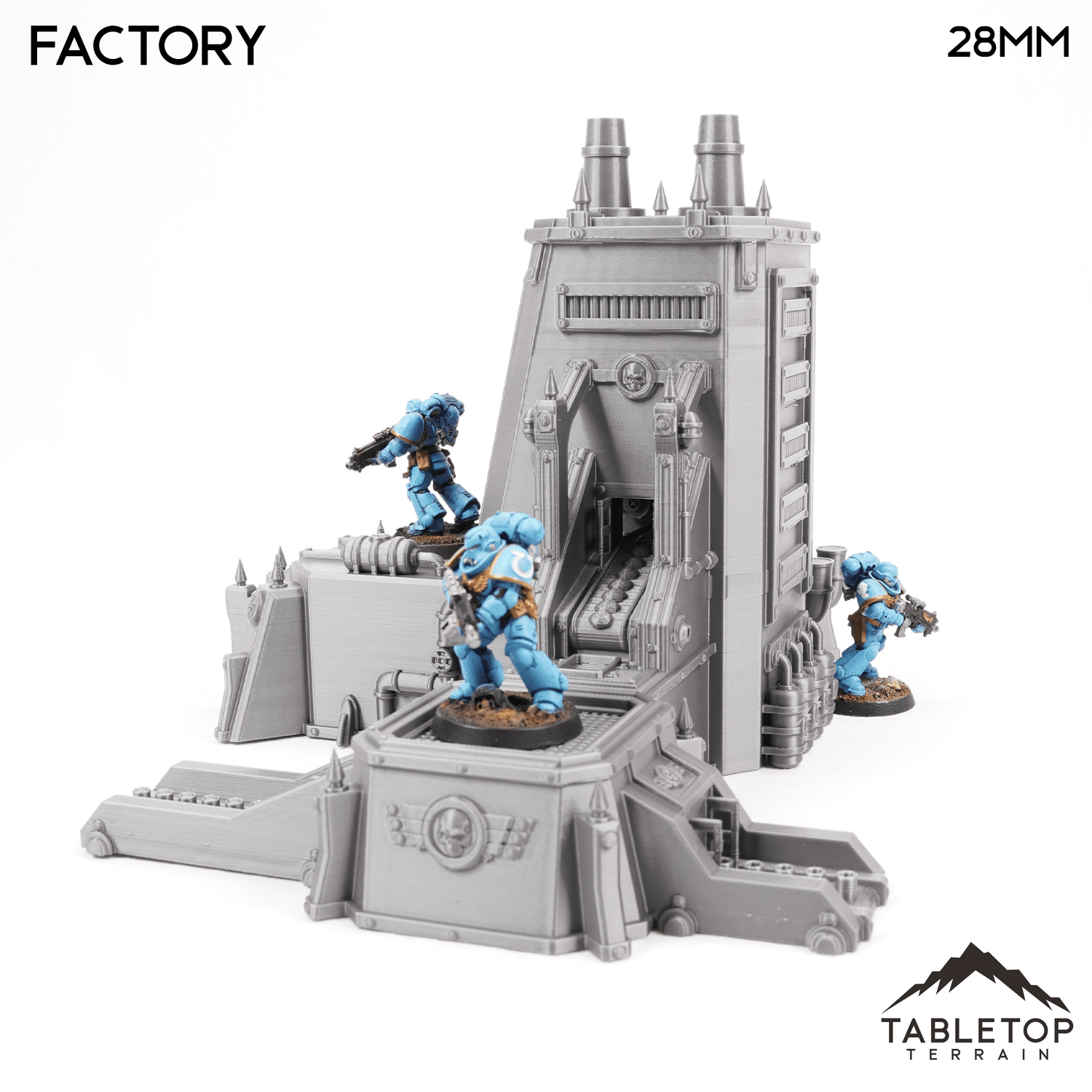 In 28mm scale, the factory measures 242x208x161mm / 9.5x8.2x6.3 inches