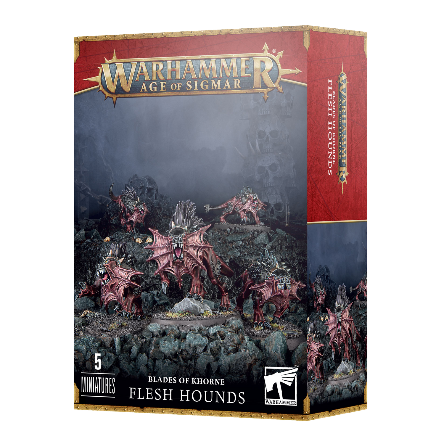 This kit contains everything you need to build five Flesh Hounds. Each is armed with blood-dark claws and wears a collar of Khorne.