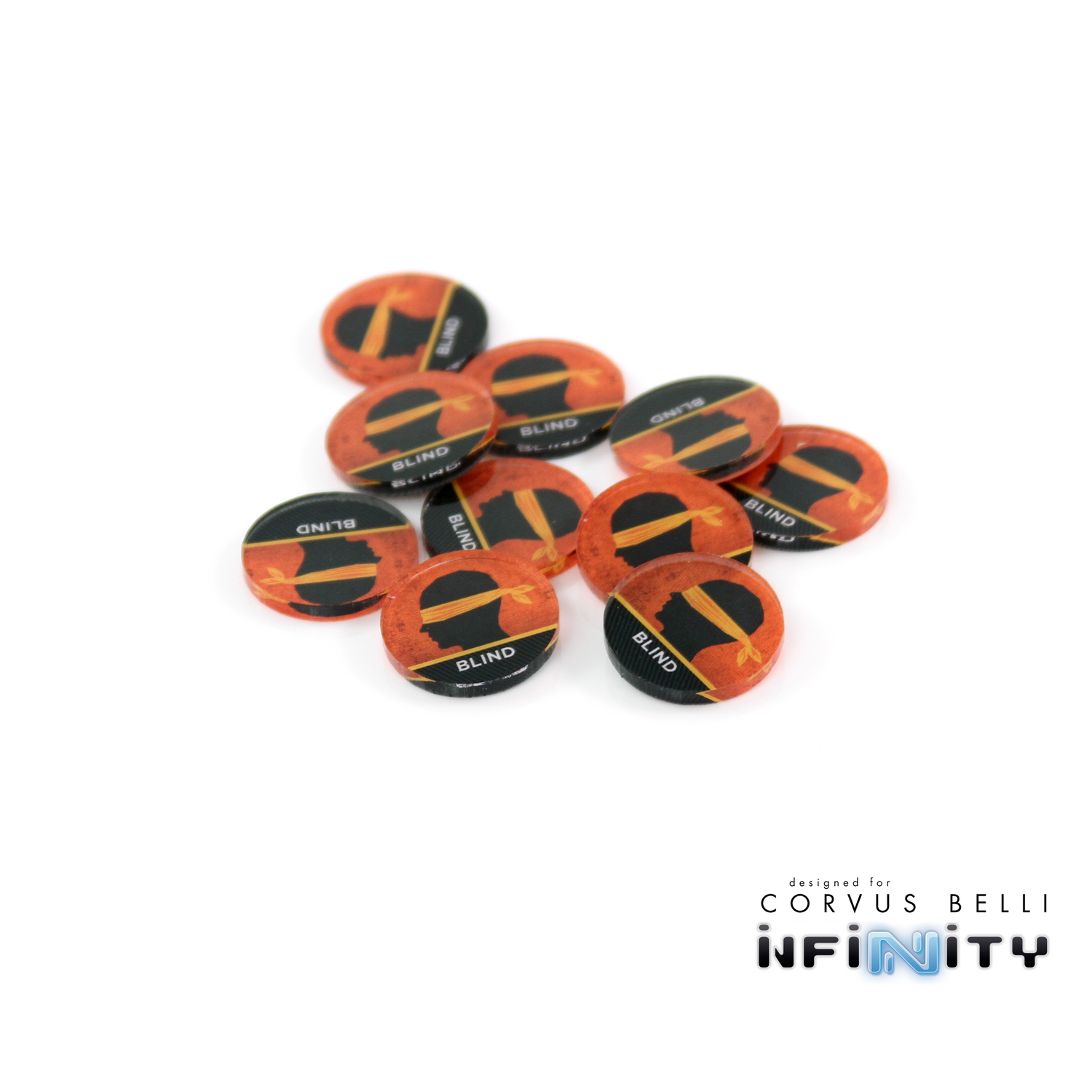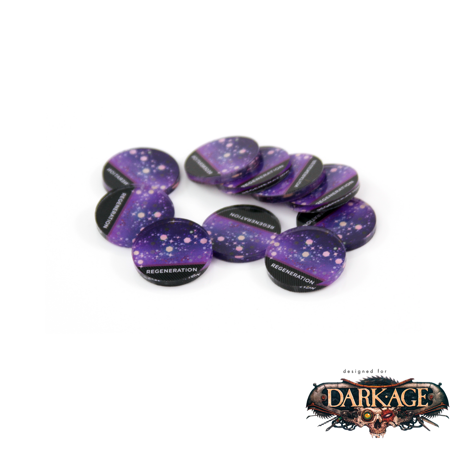 Markers are 25mm in diameter and are printed in full color on 3mm clear acrylic. Scavenge Markers are 30mm.
