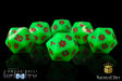 Step into the strategic realm of Infinity with the NA2 Official Dice Set. These six oversized D20s are more than just tools—they're your allies in battle, each one a 22mm symbol of tactical prowess. Crafted with a striking blend of unionized green hues and marbled sand veins, inlaid with a fierce blood-red symbol, these dice embody the essence of the Not-Aligned Armies. Officially licensed by Corvus Belli, every roll resonates with the power and unpredictability of the NA2 faction.